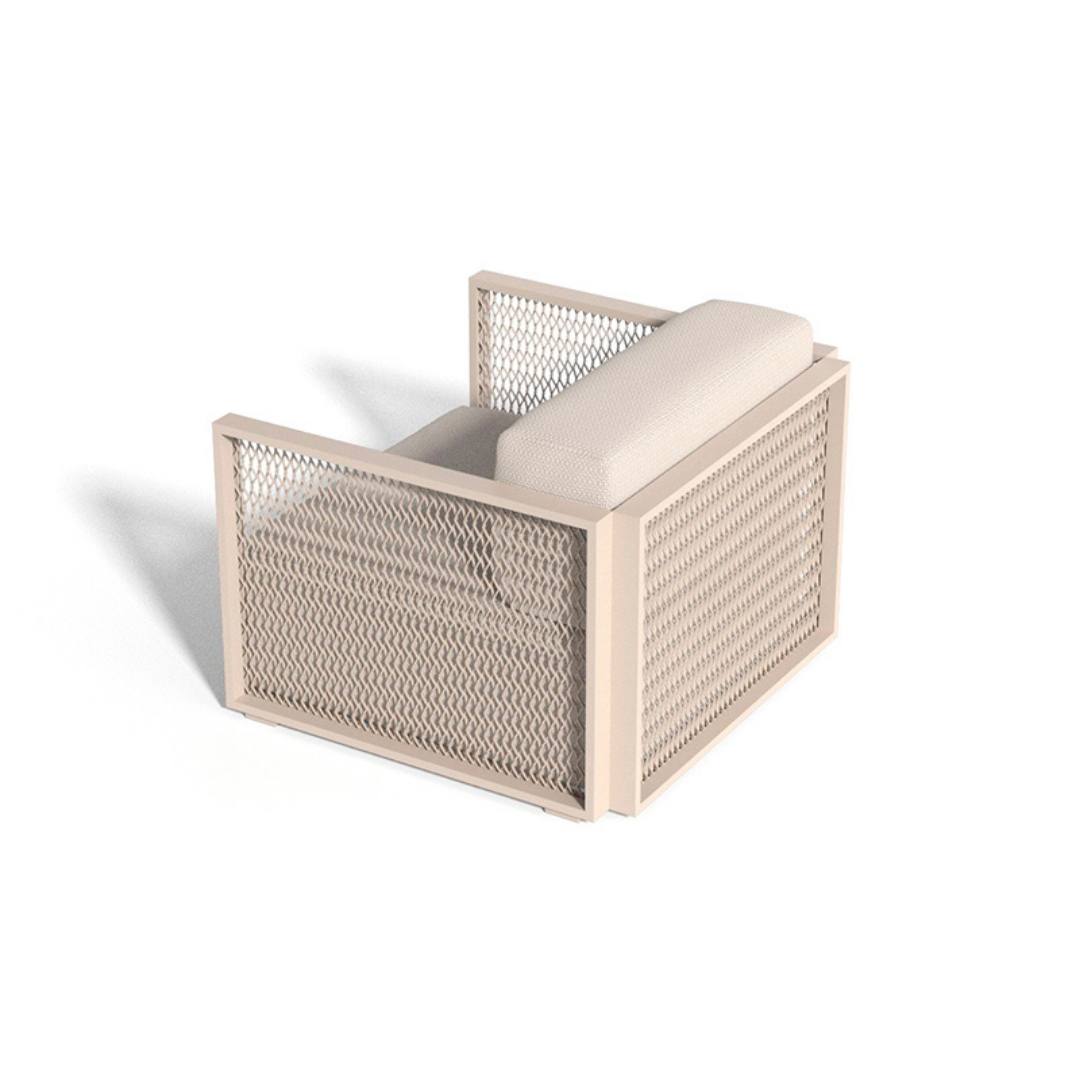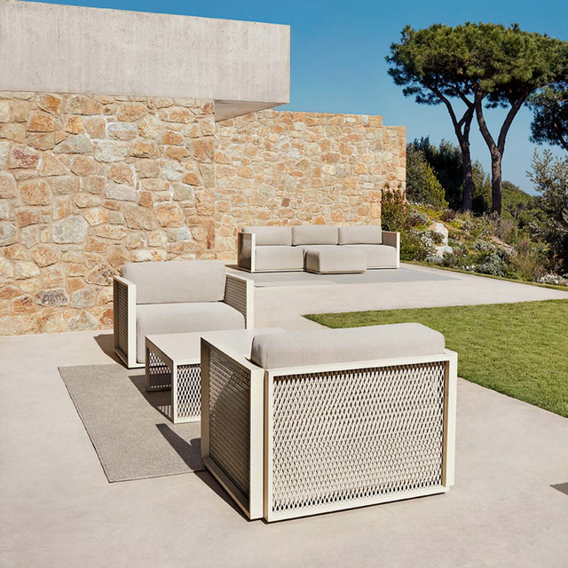 A The factory kerti fotel alumínium vázzal, és nagyon kényelmes, vastag párnákkal rendelkezik. Anyaga széles színválasztékban érhető el, melyek kellemes tapintásúak. A rácsos keretek, és a finom vonalak ellentétes hatást keltenek, így könnyedén illeszkedik a rusztikus, és modern környezetekbe is.
