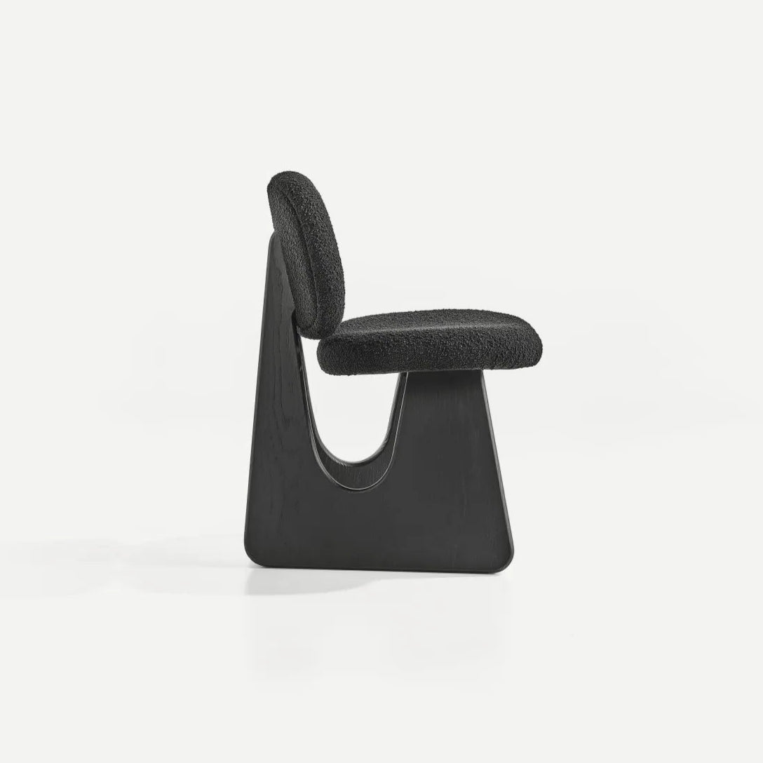 A Twig szék fából készült alapjának ívelt, szuggesztív formája a gyökerek természetesen organikus formáit idézi. A szövet, bőr vagy nubuk anyaggal borított háttámla és a párnázott ülés a tiszta íves formák egyesüléséből ered, amelyek elegáns, barátságos légkört teremtenek.