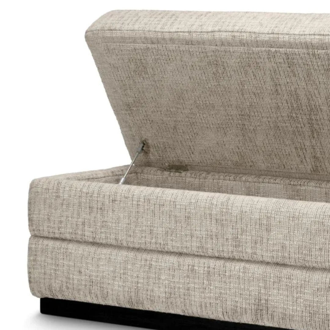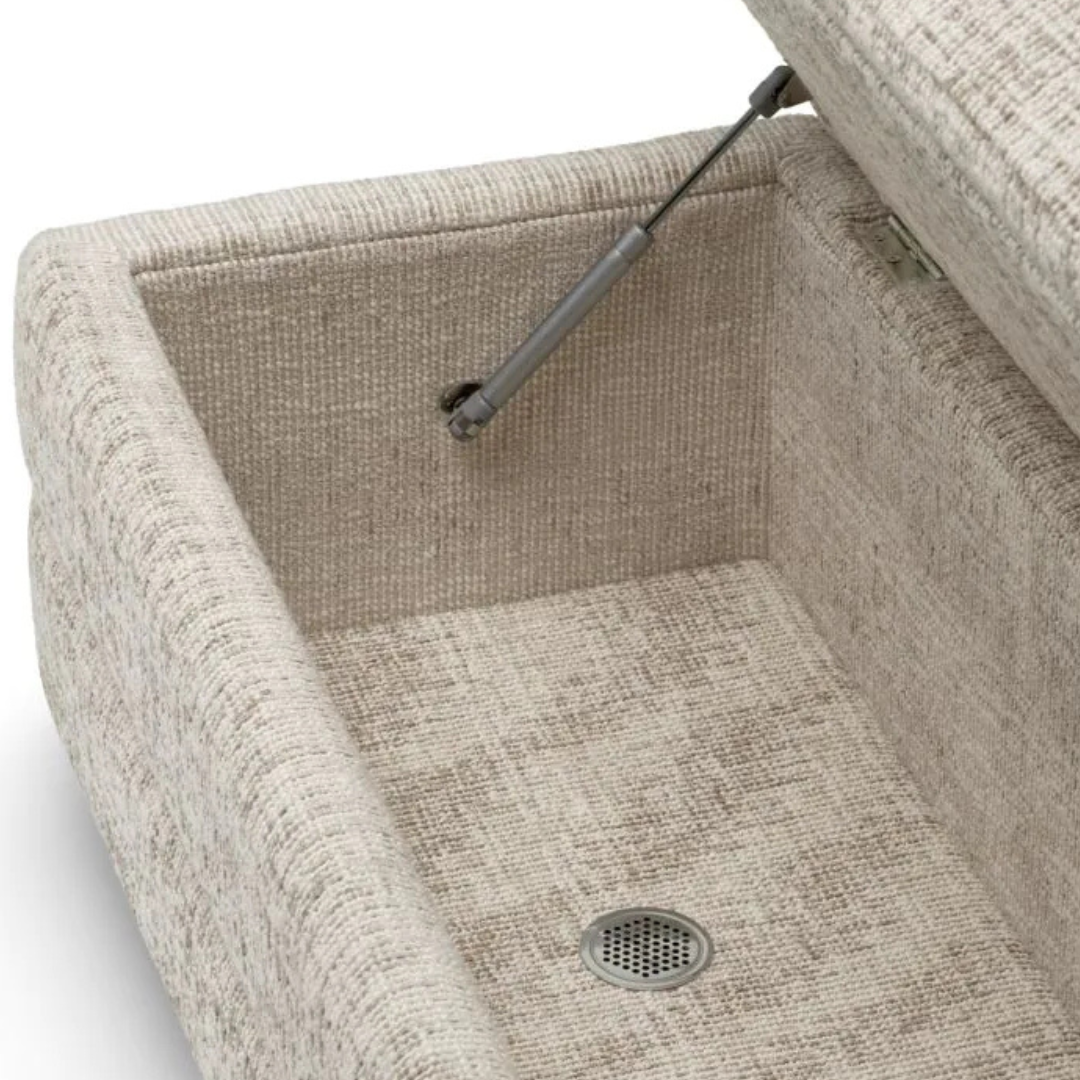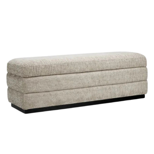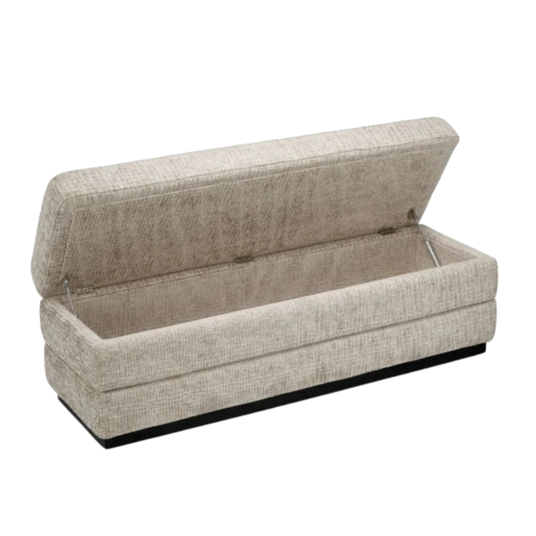 A Creststone bézs színű Valmont pad luxus anyaggal kárpitozott és ébenfa színű alapon áll, ötvözve a kényelmet a praktikus tárolási lehetőségekkel. Beépített légrugós nyitórendszere praktikus, szellőzővel ellátott tárolóhelyet rejt, ami növeli a használhatóságot. Ezáltal ez az elegáns darab a funkcionalitás és az időtálló design tökéletes ötvözete.