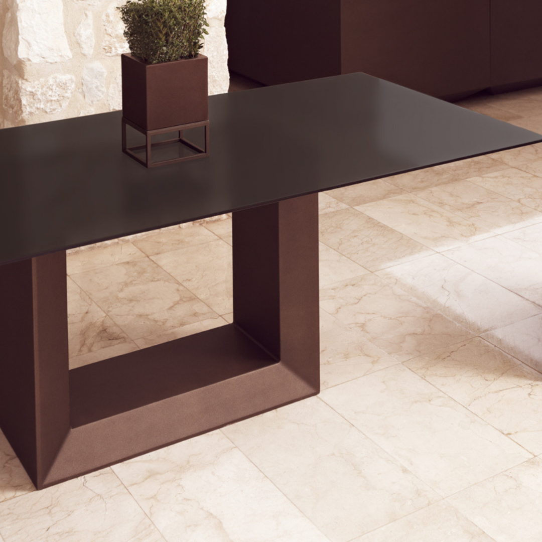 A kétféle méretváltozatban elérhető Vela kerti étkezőasztalok polietilén gyantából készültek, mely 100%-ban újrahasznosítható. Modern megjelenése, és különleges, vastag keretes lába miatt garantáltan kiemelkedő bútordarabja lehet kertednek vagy teraszodnak. Egyedi gyártásra készül, így szabadon választhatod ki a színét. Különlegessége, hogy az ICE WHITE színű változathoz beépített LED világítás is rendelhető.