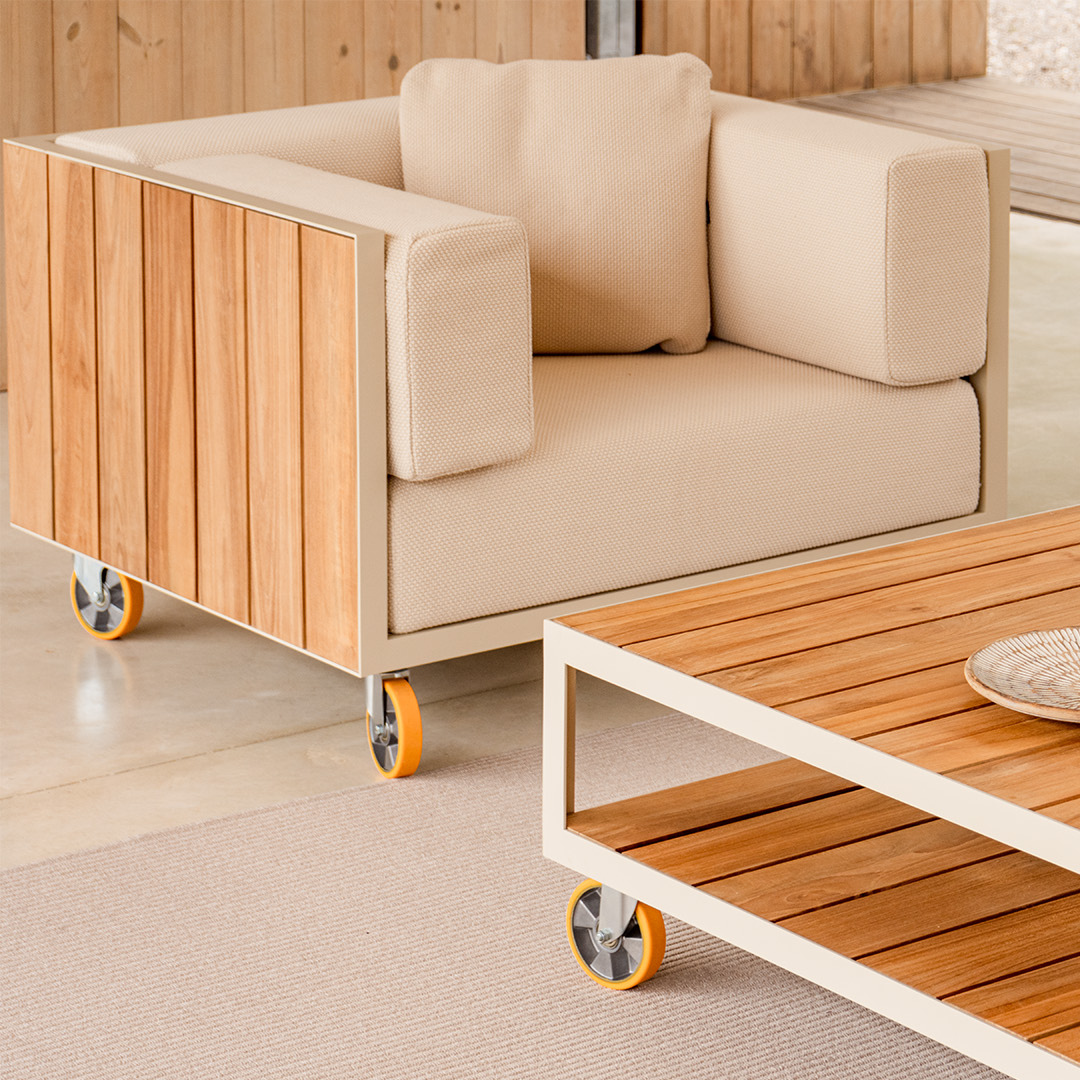 A Ramón Esteve által tervezett Vineyard kerti fotel a mediterrán stílus lényegét ragadja meg, minden egyes darabjában ötvözi az eleganciát és a kényelmet. A tengerparti és a szabadtéri életmód által ihletett modell tökéletes a nyugodt és barátságos környezet megteremtéséhez. A Vineyard kollekció különlegessége, hogy kerekekkel felszerelt változatokban is elérhető az összes termék.