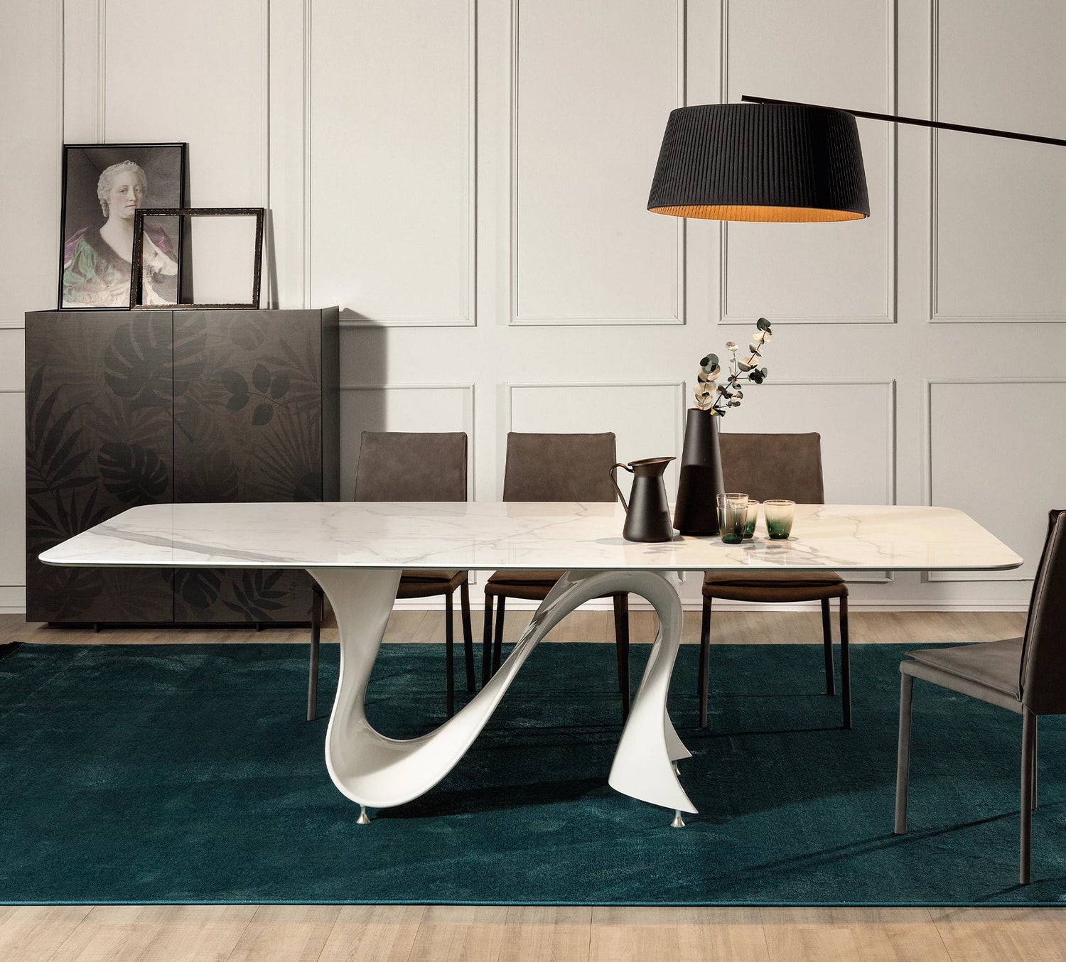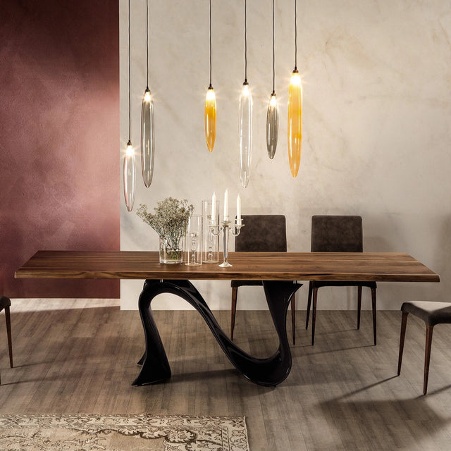 A Wave hosszú és változatos technikák eredménye, amelyek a különböző és innovatív anyagokkal való kidolgozáson alapulnak. Úgy döntöttünk, hogy Baydurt használunk, egy olyan anyagot, amely lehetővé tette, hogy az alap tökéletesen utánozza a hullám erős és határozott mozgását. Ellensúlyozásként az asztallapot úgy terveztük, hogy a lehető legstatikusabbnak tűnjön, egy vonal, amely megnyugtatja és újradefiniálja a hullámot. Fix és bővíthető kivitelben elérhető, szögletes, lekerekített vagy ovális alakú asztallappal.