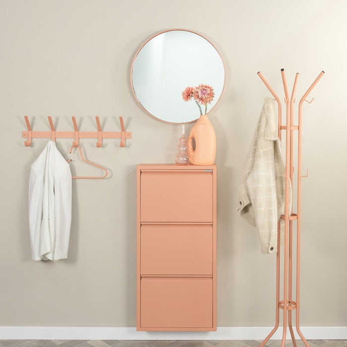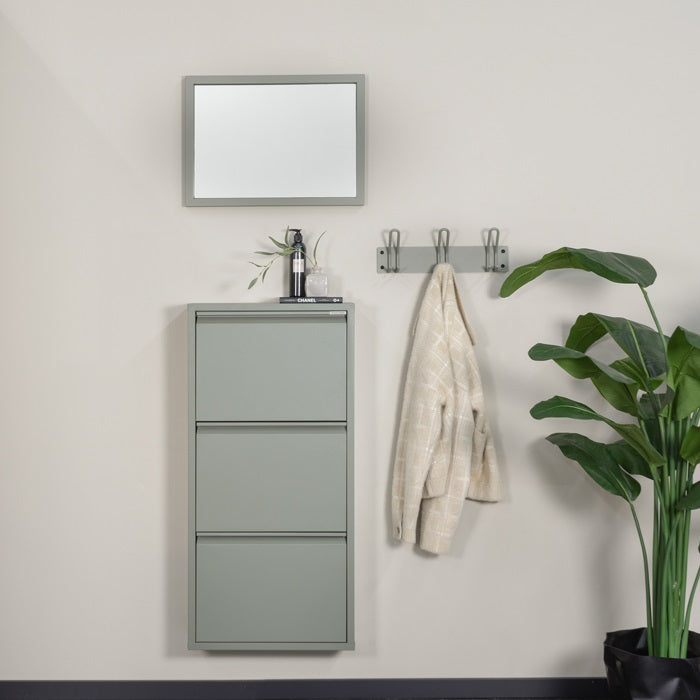 A porszórt acélból készült karcsú, sekély kialakítású Billy 3 stílusos választ kínál a földön szanaszét heverő cipők problémájára. Letisztult külseje könnyedén illeszkedik bármely előszoba enteriőrjébe, miközben a többféle szín miatt könnyedén kiválaszthatod a neked megfelelőt. Kb. 18 pár cipő számára alkalmas. Keresd a Billy cipőtároló család többi tagját és párosítsd kedved szerint.