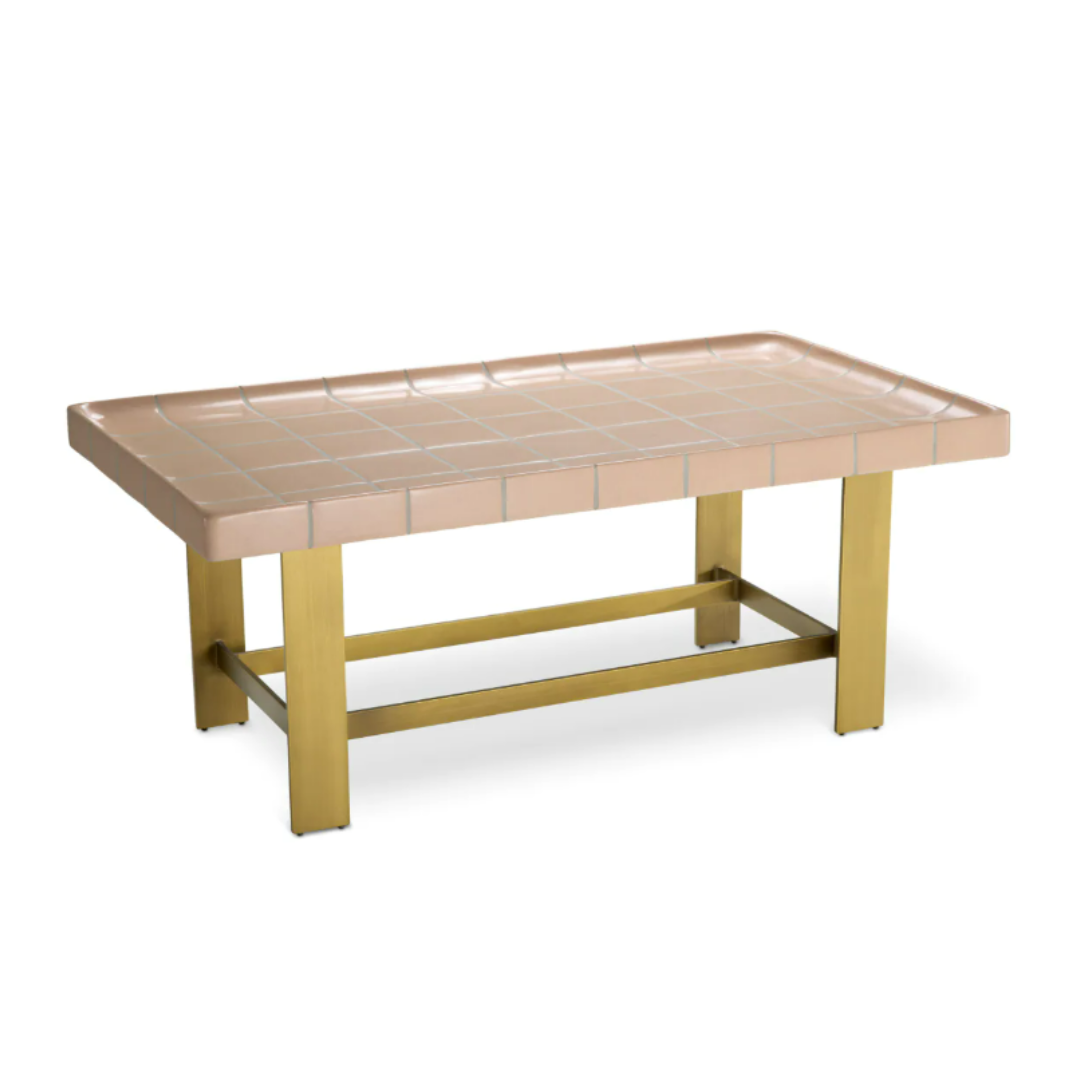 Fedezd fel a figyelemre méltóan elegáns Adrian dohányzóasztalt, amelyet gyengéd rózsaszín kerámia máz díszít, és amely finom kifinomultságot sugároz. A csiszolt sárgaréz lábazat fokozza a fényűző vonzerőt, így ez az asztal tökéletes a visszafogott luxust kereső, igényes vásárlók számára. Az árnyalatok és anyagok harmonikus keveréke kifinomult eleganciát sugároz, és elegáns kiegészítője lehet bármilyen igényes környezetnek.