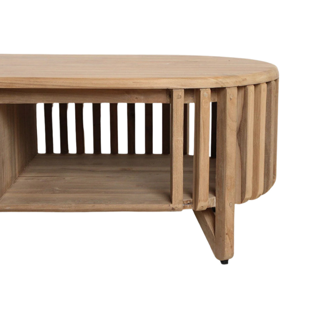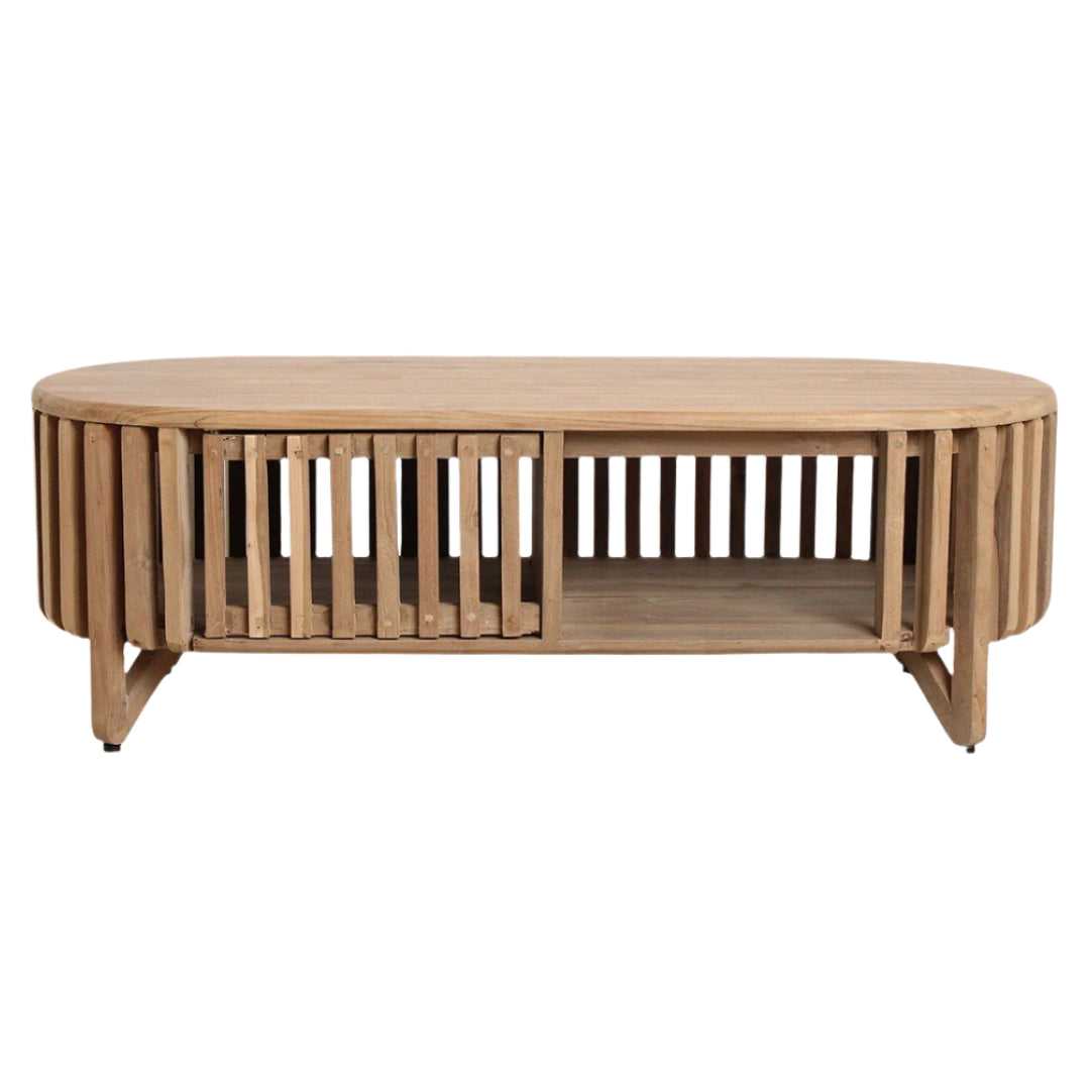A Louvre dohányzóasztal egy igazi mutatós darab lehet az otthonodban. A tárolórész és az alap újrahasznosított FSC tanúsítvánnyal rendelkező, újrahasznosított fa anyagból, gyönyörű színű, és valóban fenntartható fából készült. A lécszerkezet nyitott, légies megjelenést kölcsönöz az asztalnak, de az ajtó mögé mégis elrejtheted kedvenc mindennapi kiegészítőidet.