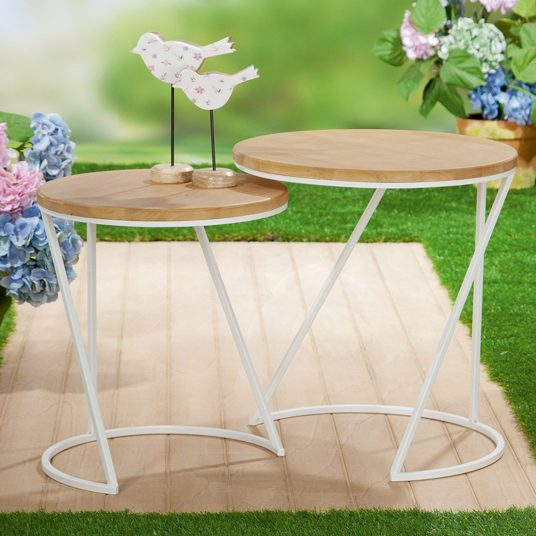 A Merida dohányzóasztal szett két darabból áll. Minimalista formavilága lehetővé teszi azt, hogy megannyi stílushoz illeszkedjen. Fehér fém lábazata légies és friss hatást kelt és ideálissá teszi kisebb terekbe is. Kerek fa asztallapja natúr színben készült, amivel kiválóan illik a mai modern trendekbe.