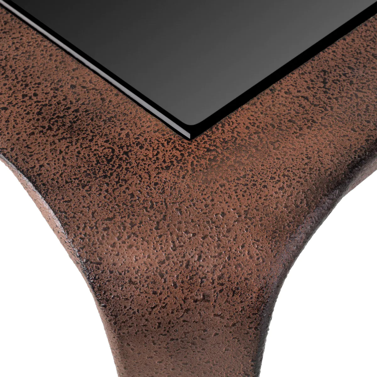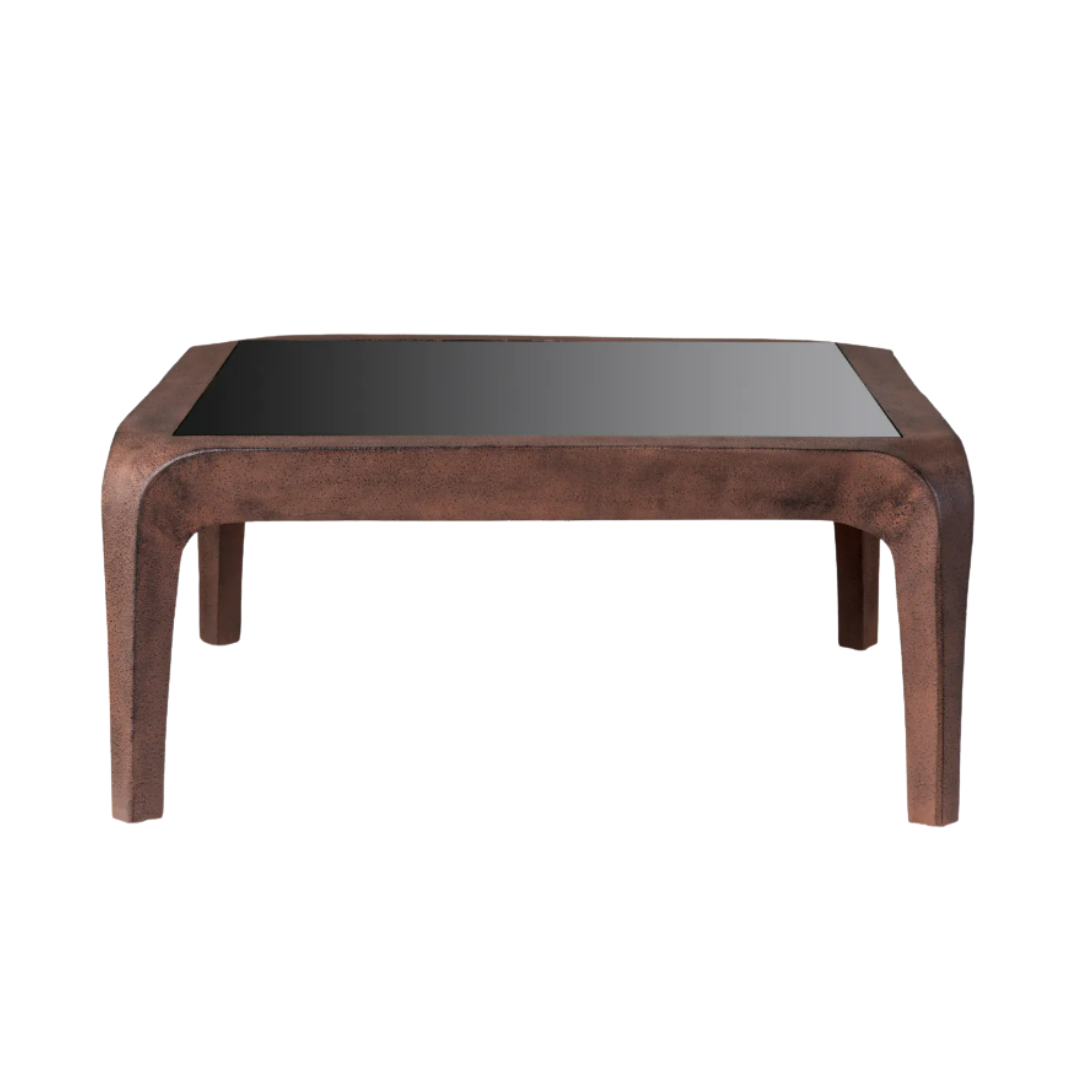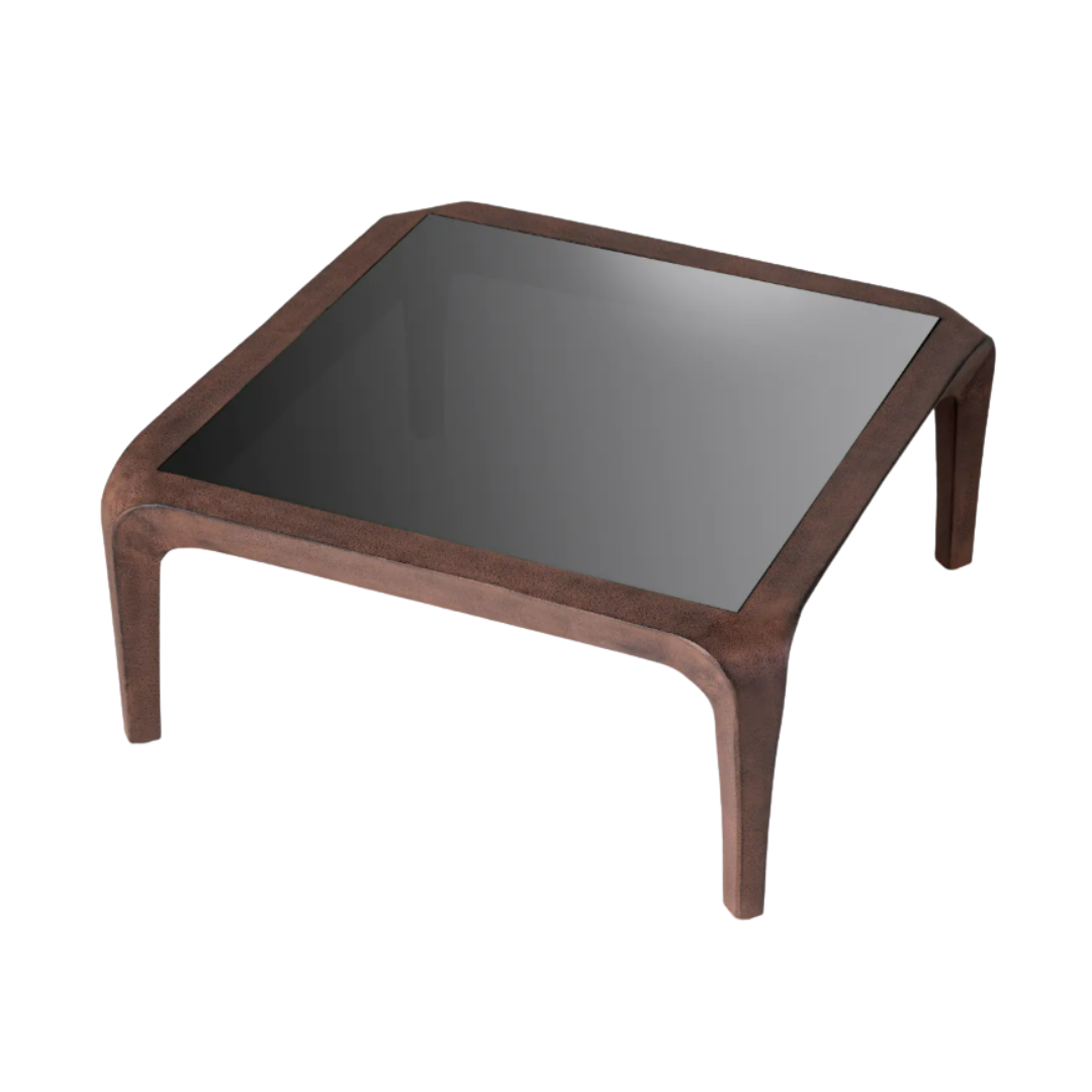 Fedezd fel a modern elegancia csábítását a Quentin dohányzóasztallal, amelynek elegáns fekete üveglapja kiegészíti az oxidált, újrahasznosított alumínium alapot. Ez a darab gazdag textúrái és kifinomult kialakítása révén kifinomultságot sugároz, tökéletes azok számára, akik értékelik az anyagok finom összjátékát és az időtlen csillogást a csúcskategóriás bútorok terén.