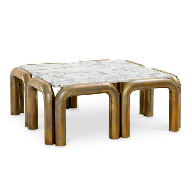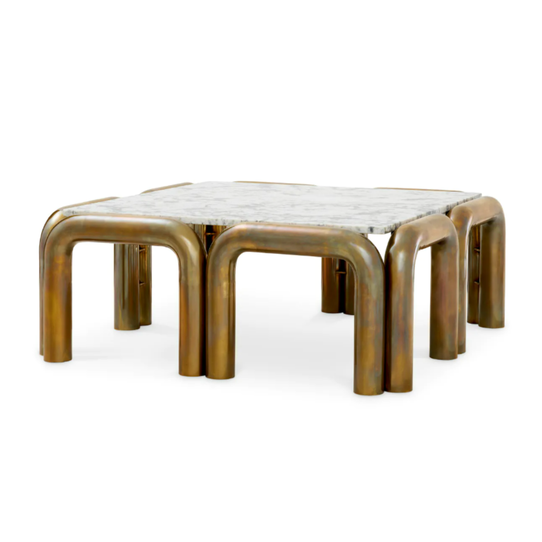 Fedezd fel a Sunwood dohányzóasztal varázsát, amelyet fehér márványlap díszít, amely egyedi erezettséggel rendelkezik, így minden darabja egyedi. A merész, vintage sárgaréz kivitelű lábak emelik a fényűző vonzerőt, így a kifinomultság és az elegancia központi darabja lesz azok számára, akik a karakteres, magas színvonalú bútorokat kedvelik.