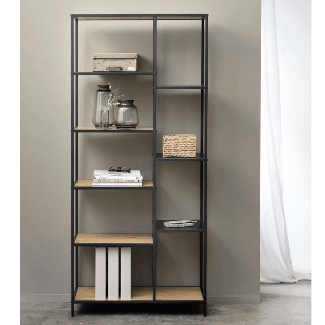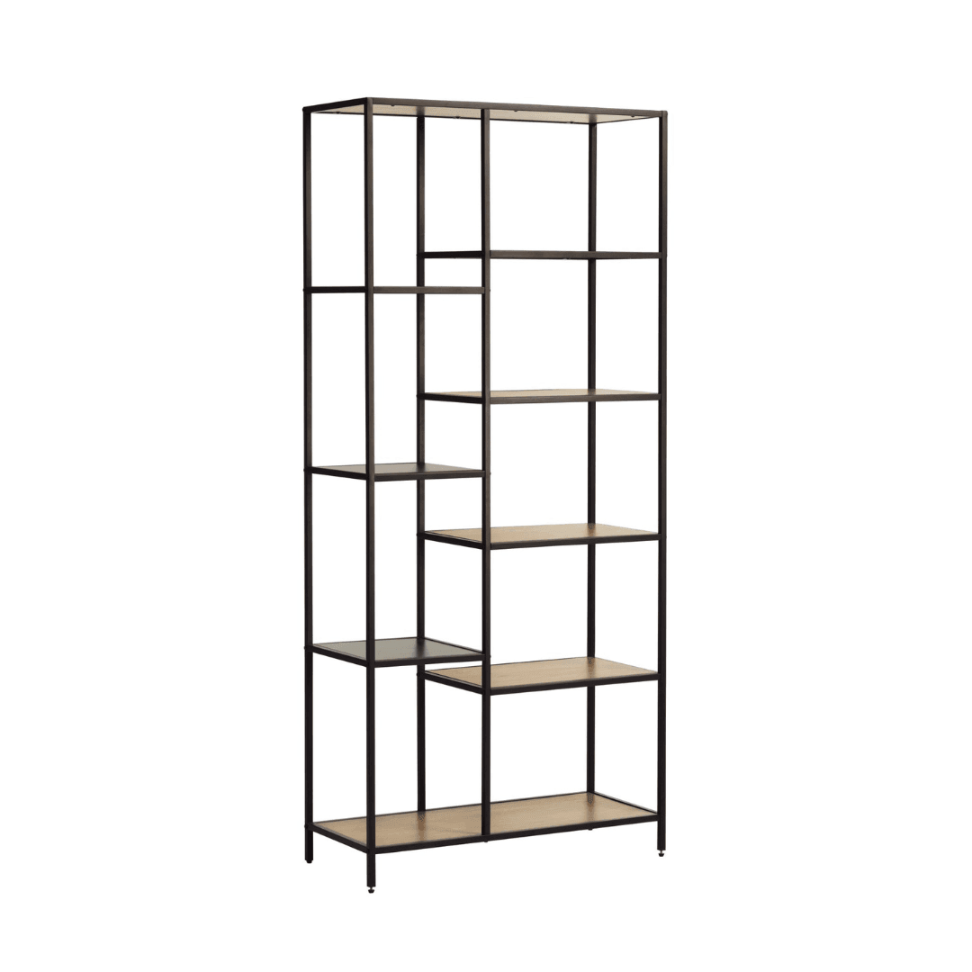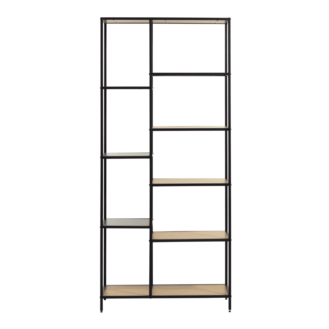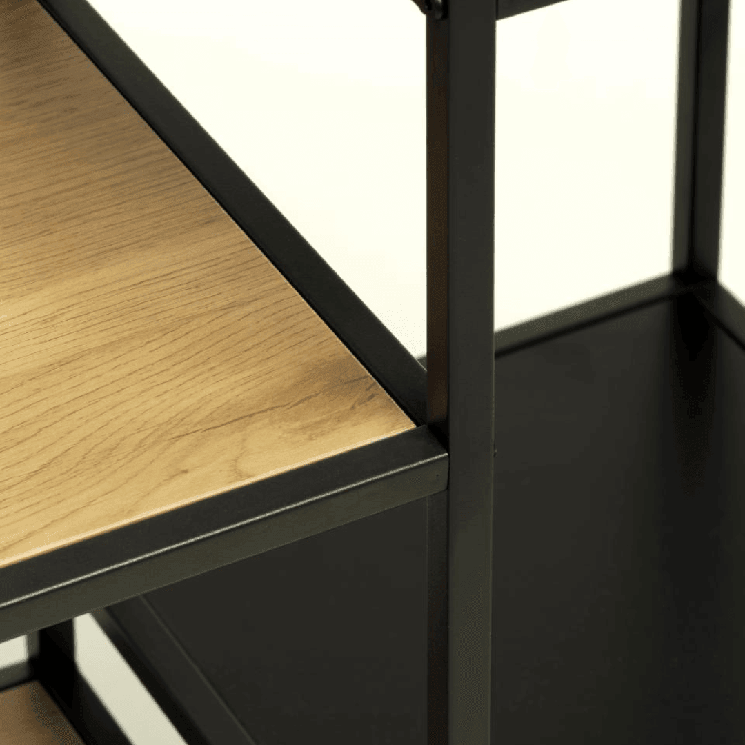 Az Altino letisztult és minimál stílusú polc tökéletes választás otthoni vagy irodai használatra. A fekete fém lábak és tölgy lapok kombinációja elegáns megjelenést kölcsönöz a terméknek. Használható akár kisebb tárgyak bemutatására vagy könyvespolcként is. A mérete 80 x 180 x 35 cm, ideális méretű a kényelmes mindennapi használathoz.