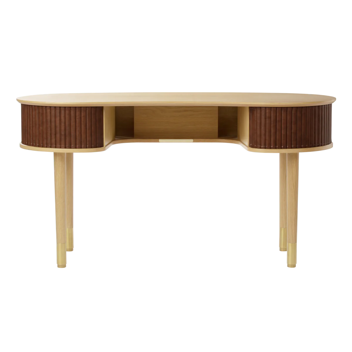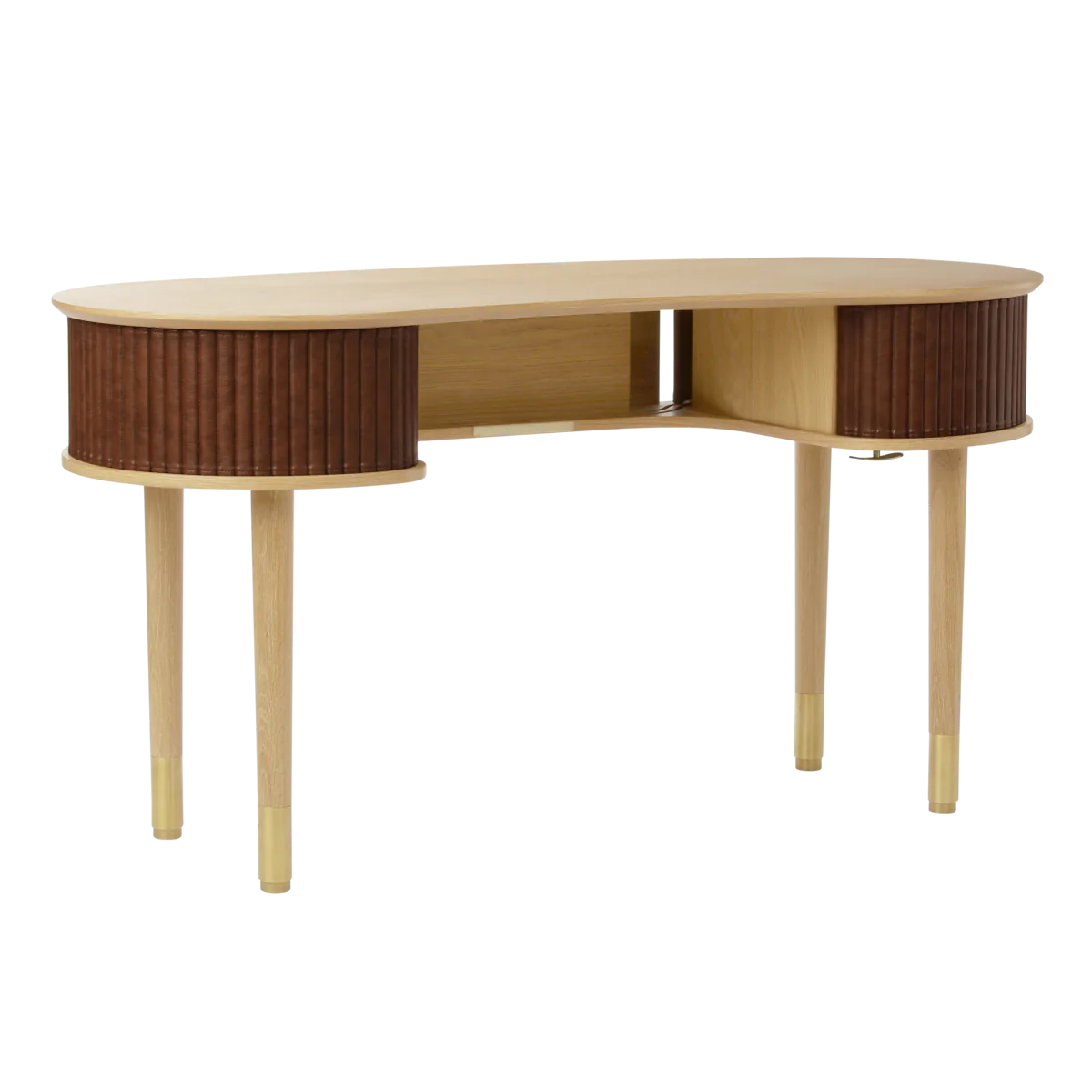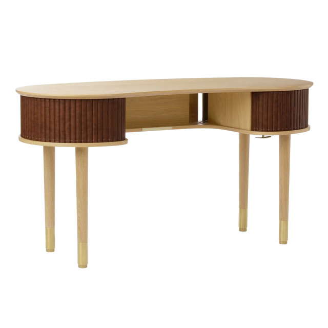 Az Audacious íróasztal egy időtálló íróasztal olyan részletekkel, amelyek fokozzák a termelékenységet és növelik a munkaterület rendezettségét. Az íróasztal ívelt, organikus sziluettje a skandináv kecsesség érzetét kelti, míg a tologatható szövet tambur ajtók egy csipetnyi modern nosztalgiát adnak hozzá, zökkenőmentes átmenetet teremtve a múlt és a jelen között.