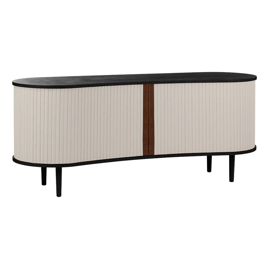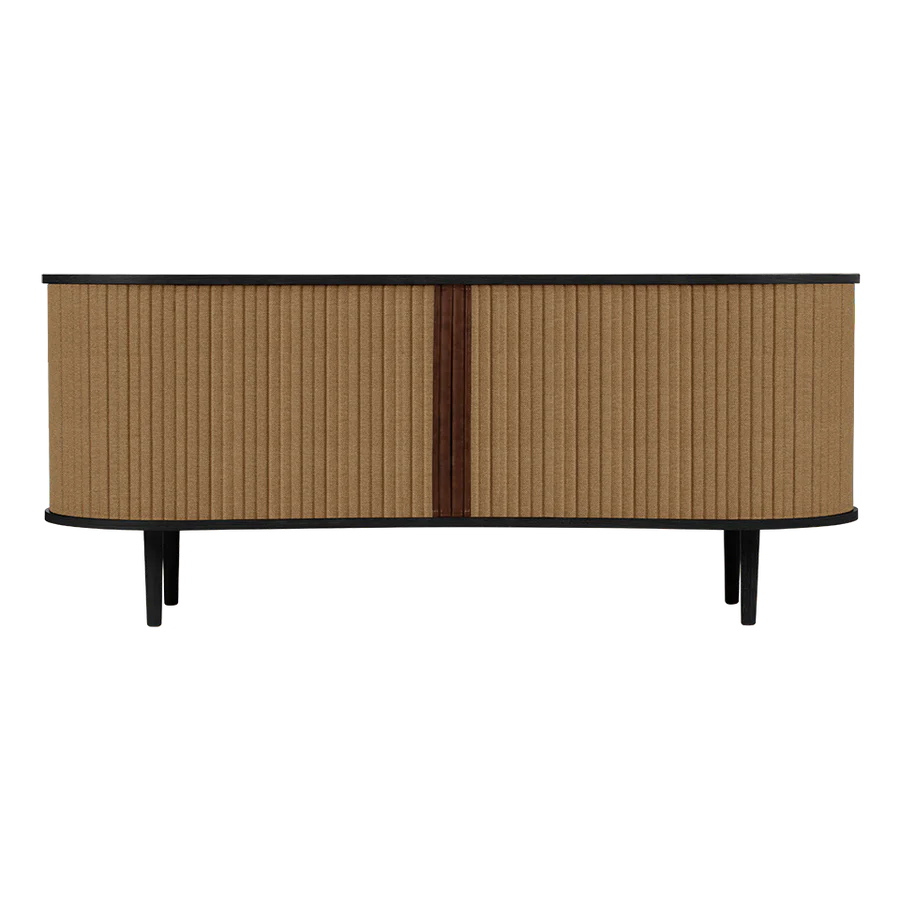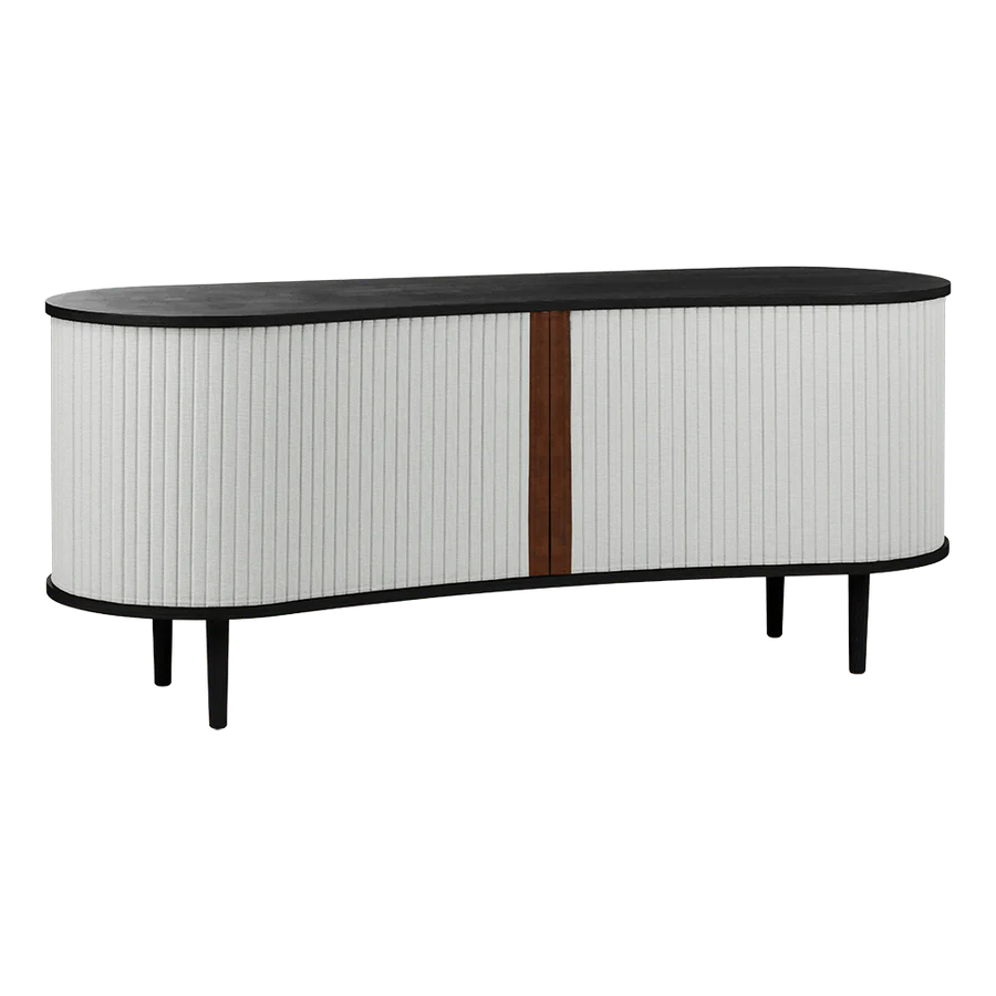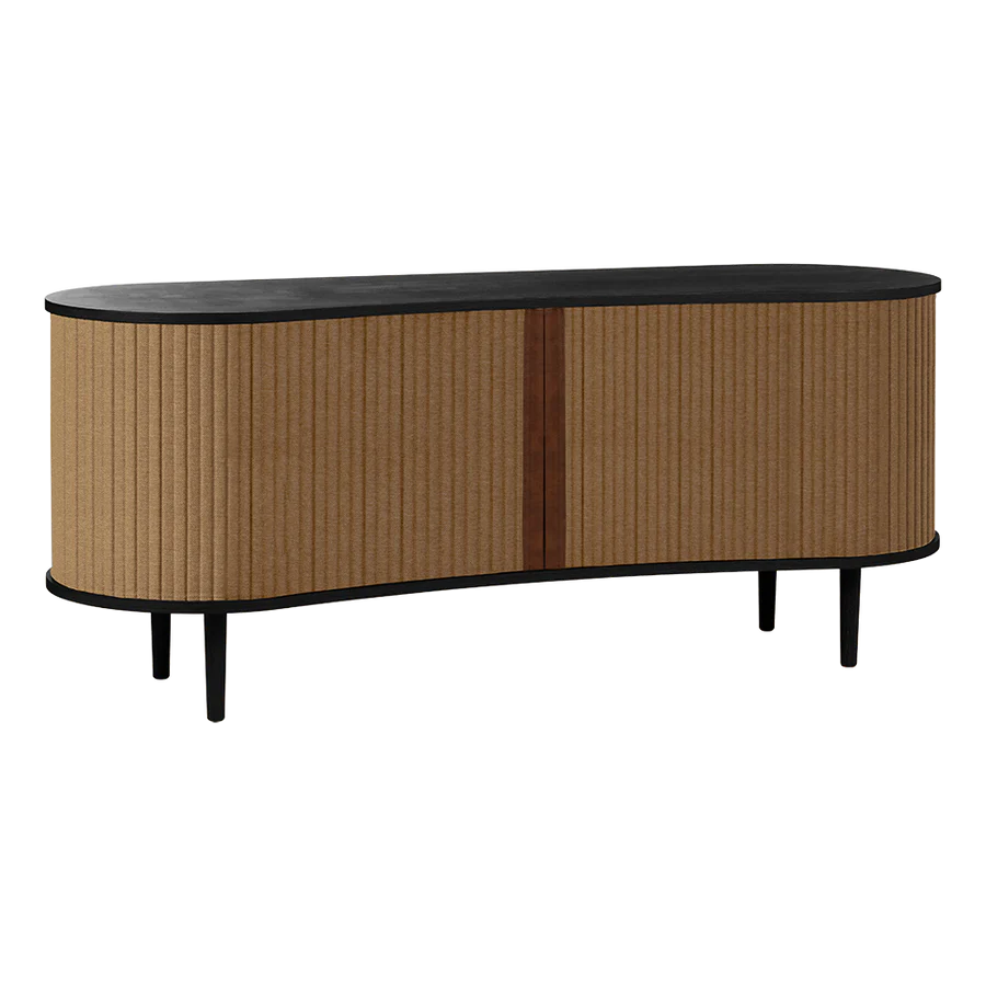 Az Audacious kabinet a hagyományos tárolási megoldásokat egy csipetnyi visszafogott luxussal gondolja újra. A kabinet ívelt, organikus sziluettje az északi kecsességet idézi, míg a szövetből készült tamburás tolóajtók egy csipetnyi modern nosztalgiát adnak hozzá, zökkenőmentes átmenetet teremtve a múlt és a jelen között. Szakítva a tömör, szögletes kockák hagyományos felfogásával, az Audacious kabinet organikus ívei életet visznek bármilyen élettérbe, meleg és barátságos környezetet teremtve. A kabinet állítható polcokkal és átgondoltan kialakított kivezetésekkel rendelkezik a polcokon és a hátlapon, lehetővé téve, hogy a szekrény belsejében zökkenőmentesen elrejtsd a kiegészítőket és konzolokat. A tamburás ajtók könnyen cserélhetők, ami azt jelenti, hogy kicserélheted őket, és új életet adhatsz a dizájnnak anélkül, hogy egy teljesen új bútordarabot vásárolnál, így megkímélve a világ erőforrásait és meghosszabbítva a dizájn élettartamát.