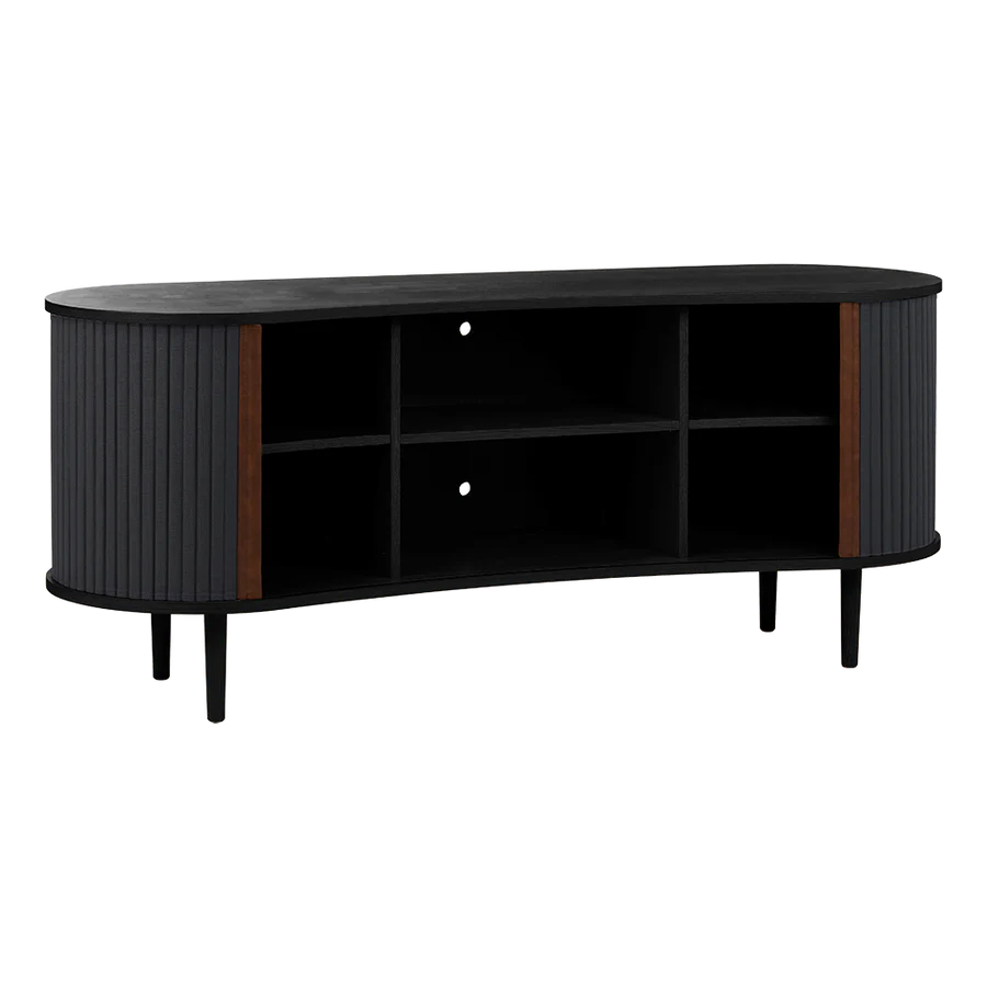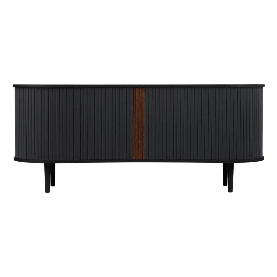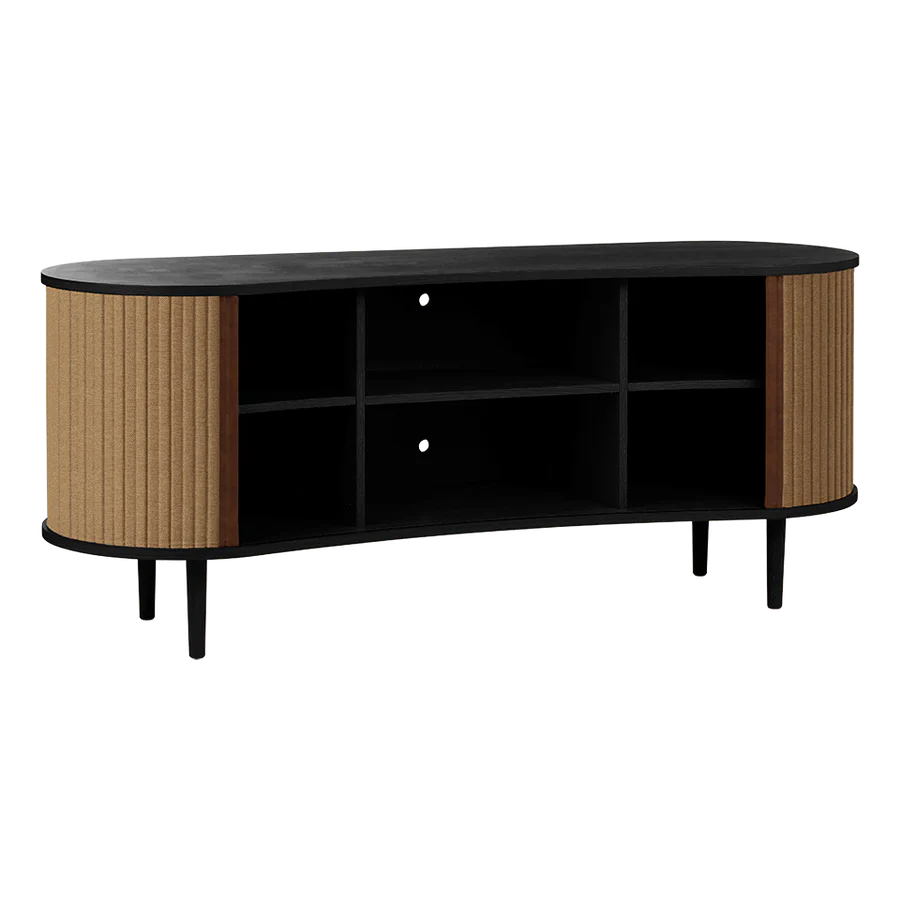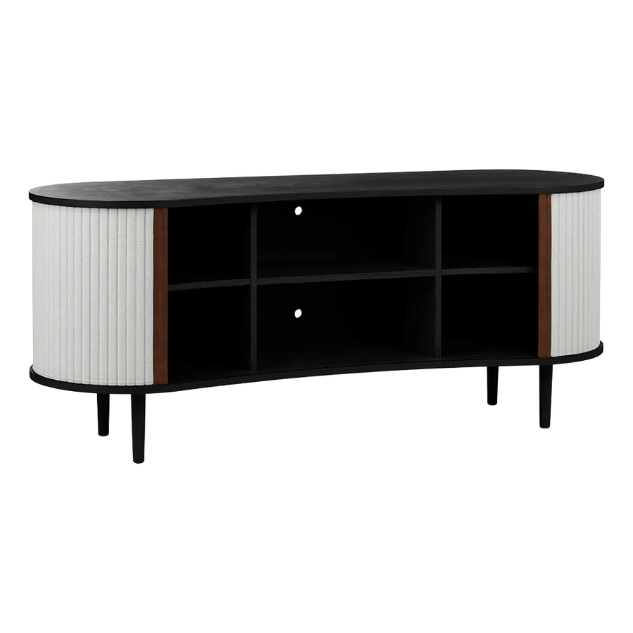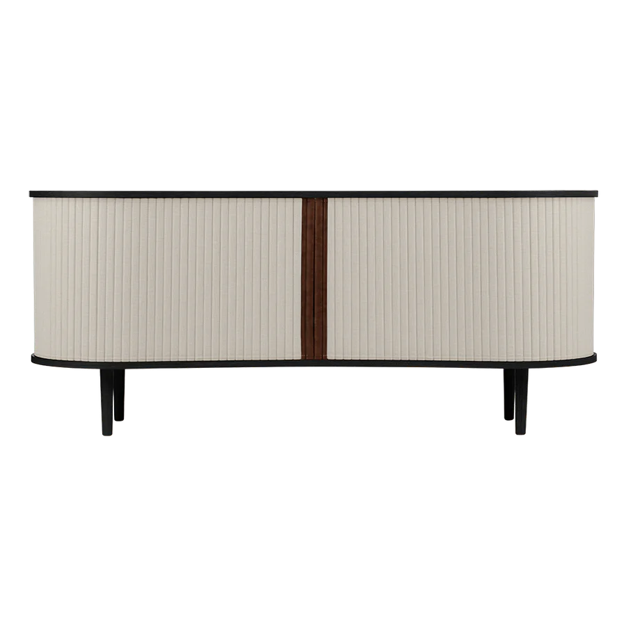 Az Audacious kabinet a hagyományos tárolási megoldásokat egy csipetnyi visszafogott luxussal gondolja újra. A kabinet ívelt, organikus sziluettje az északi kecsességet idézi, míg a szövetből készült tamburás tolóajtók egy csipetnyi modern nosztalgiát adnak hozzá, zökkenőmentes átmenetet teremtve a múlt és a jelen között. Szakítva a tömör, szögletes kockák hagyományos felfogásával, az Audacious kabinet organikus ívei életet visznek bármilyen élettérbe, meleg és barátságos környezetet teremtve. A kabinet állítható polcokkal és átgondoltan kialakított kivezetésekkel rendelkezik a polcokon és a hátlapon, lehetővé téve, hogy a szekrény belsejében zökkenőmentesen elrejtsd a kiegészítőket és konzolokat. A tamburás ajtók könnyen cserélhetők, ami azt jelenti, hogy kicserélheted őket, és új életet adhatsz a dizájnnak anélkül, hogy egy teljesen új bútordarabot vásárolnál, így megkímélve a világ erőforrásait és meghosszabbítva a dizájn élettartamát.