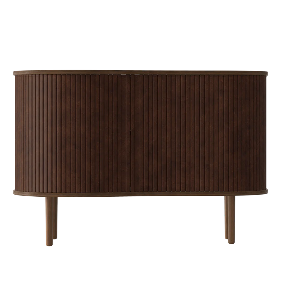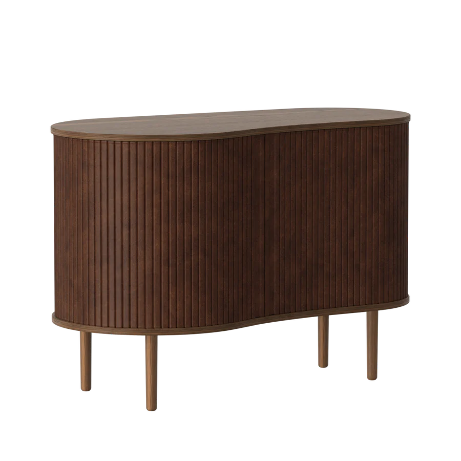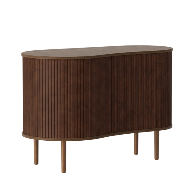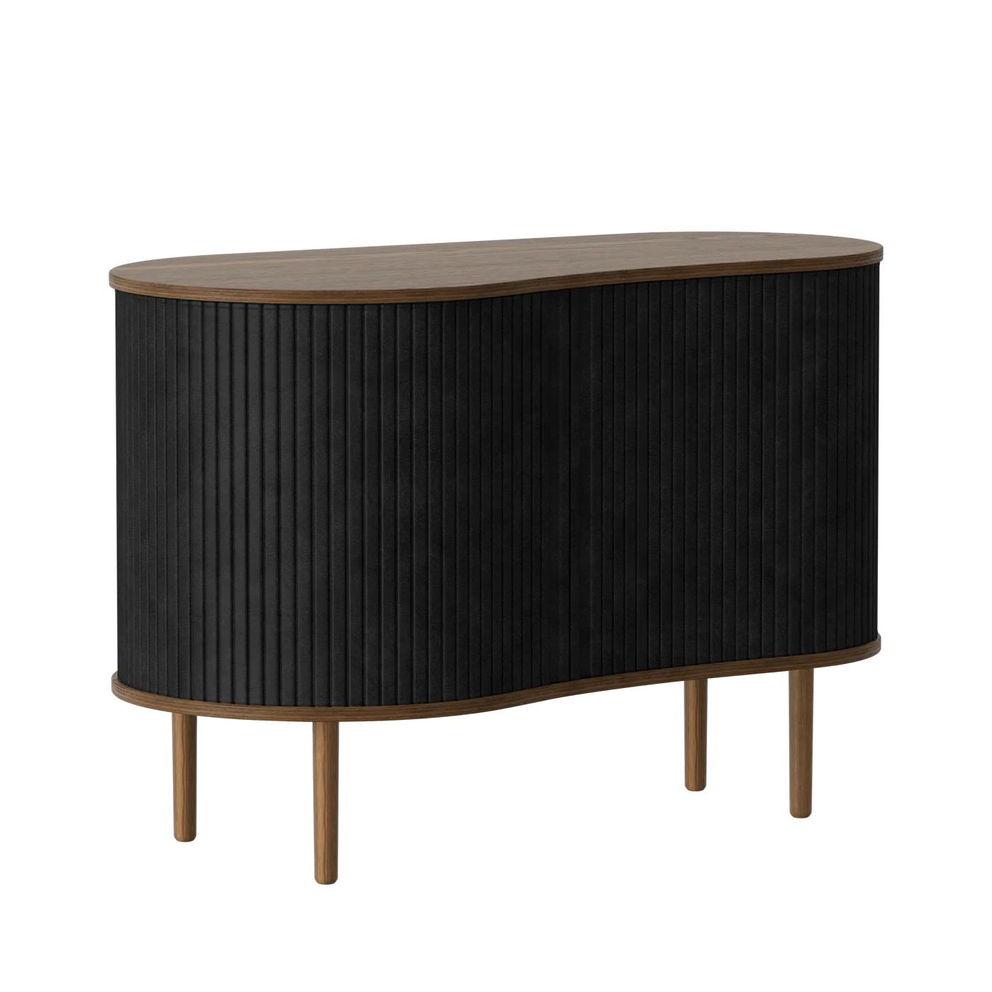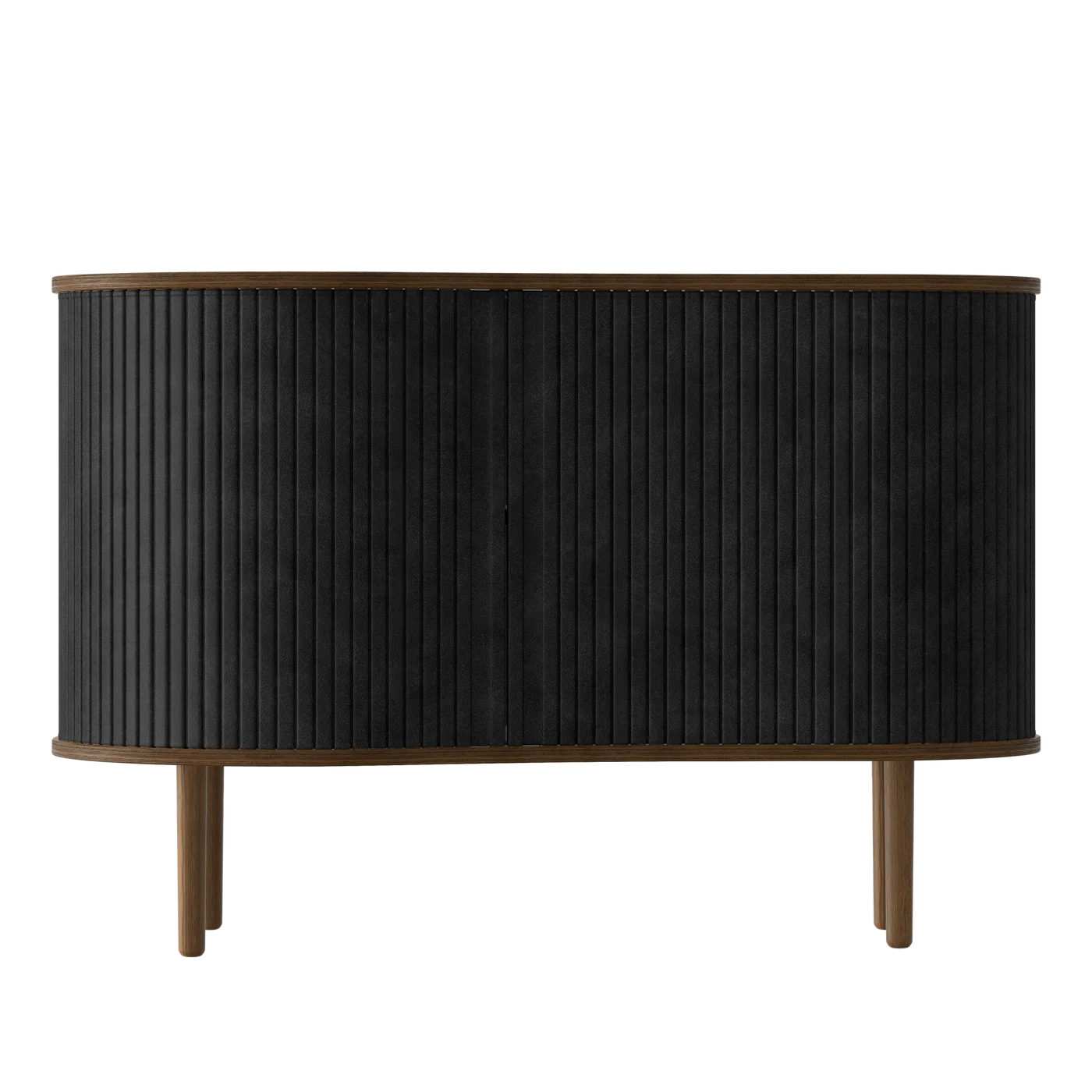 Az Audacious kabinet a hagyományos tárolási megoldásokat egy csipetnyi visszafogott luxussal gondolja újra. A kabinet ívelt, organikus sziluettje az északi kecsességet idézi, míg a szövetből készült tamburás tolóajtók egy csipetnyi modern nosztalgiát adnak hozzá, zökkenőmentes átmenetet teremtve a múlt és a jelen között. Szakítva a tömör, szögletes kockák hagyományos felfogásával, az Audacious kabinet organikus ívei életet visznek bármilyen élettérbe, meleg és barátságos környezetet teremtve. A kabinet állítható polcokkal és átgondoltan kialakított kivezetésekkel rendelkezik a polcokon és a hátlapon, lehetővé téve, hogy a szekrény belsejében zökkenőmentesen elrejtsd a kiegészítőket és konzolokat. A tamburás textilbőr bevonatú ajtók könnyen cserélhetők, ami azt jelenti, hogy kicserélheted őket, és új életet adhatsz a dizájnnak anélkül, hogy egy teljesen új bútordarabot vásárolnál, így megkímélve a világ erőforrásait és meghosszabbítva a dizájn élettartamát.