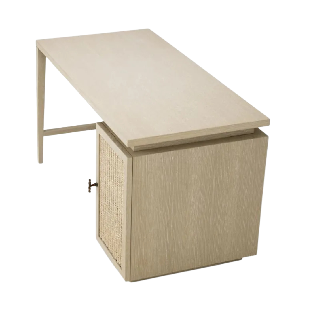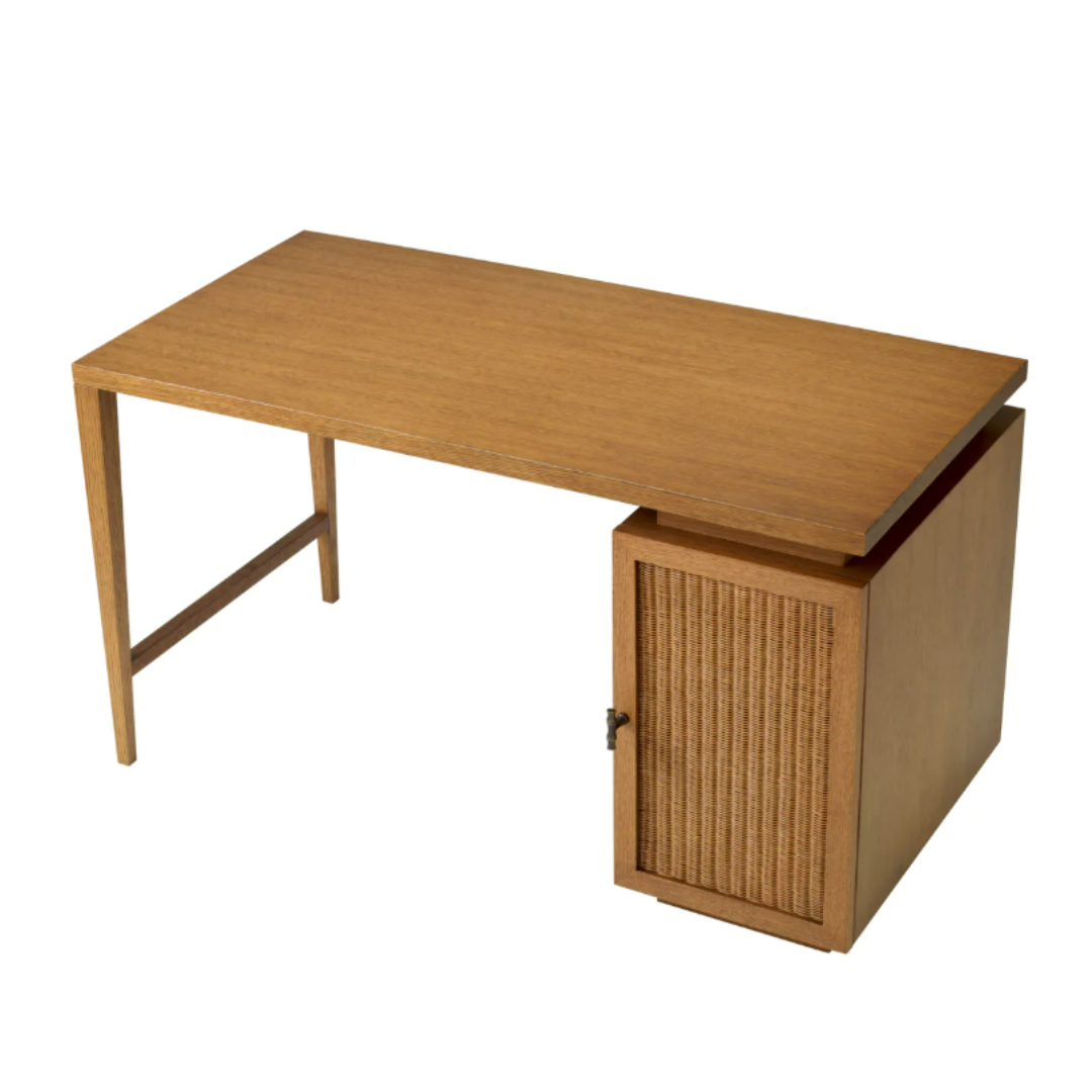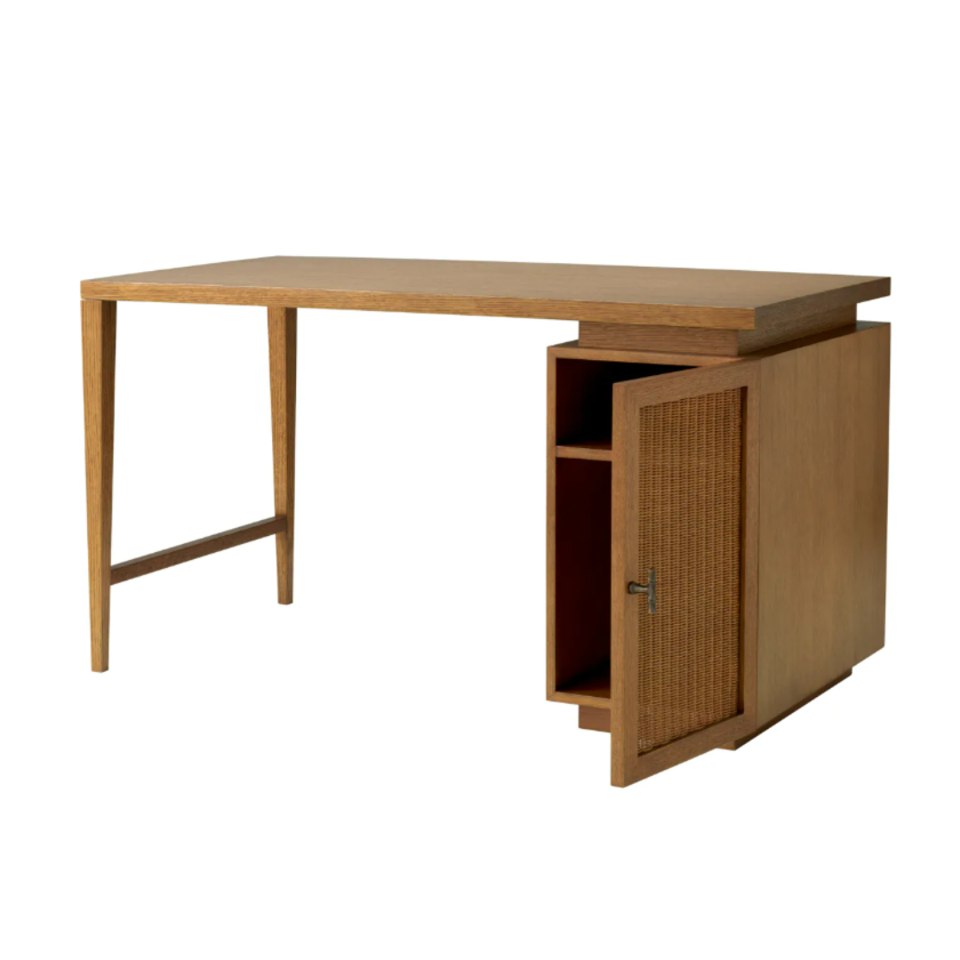 Tapasztald meg a kifinomult luxust a Borchard íróasztallal, amely gazdag karamellszínű vagy pedig natúr, mosott hatású tölgyfafurnérból készült, és rattanpaneleket ölel körbe. Ez a darab zökkenőmentesen ötvözi a melegséget a kifinomultsággal, időtlen eleganciát kínálva, amelyet az igényes vásárlók számára terveztek. Kecses esztétikája bármely belső teret az elegancia paradicsomává varázsol, így nélkülözhetetlen kiegészítője azoknak, akik értékelik a kivételes dizájnt.