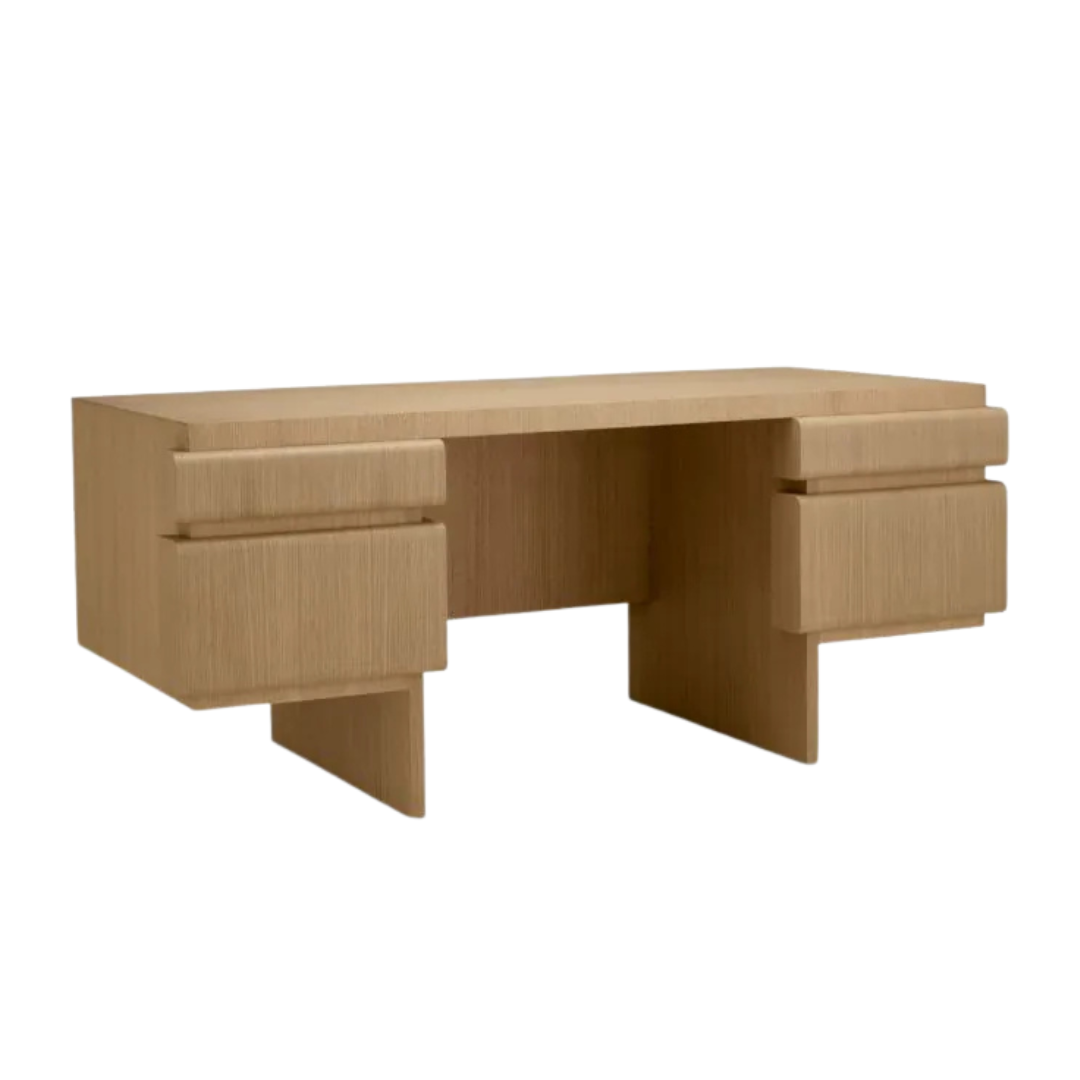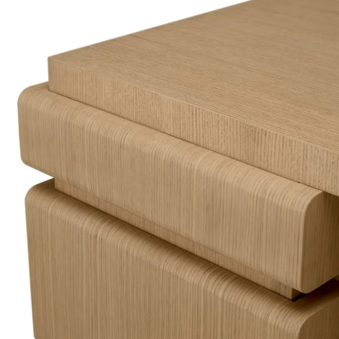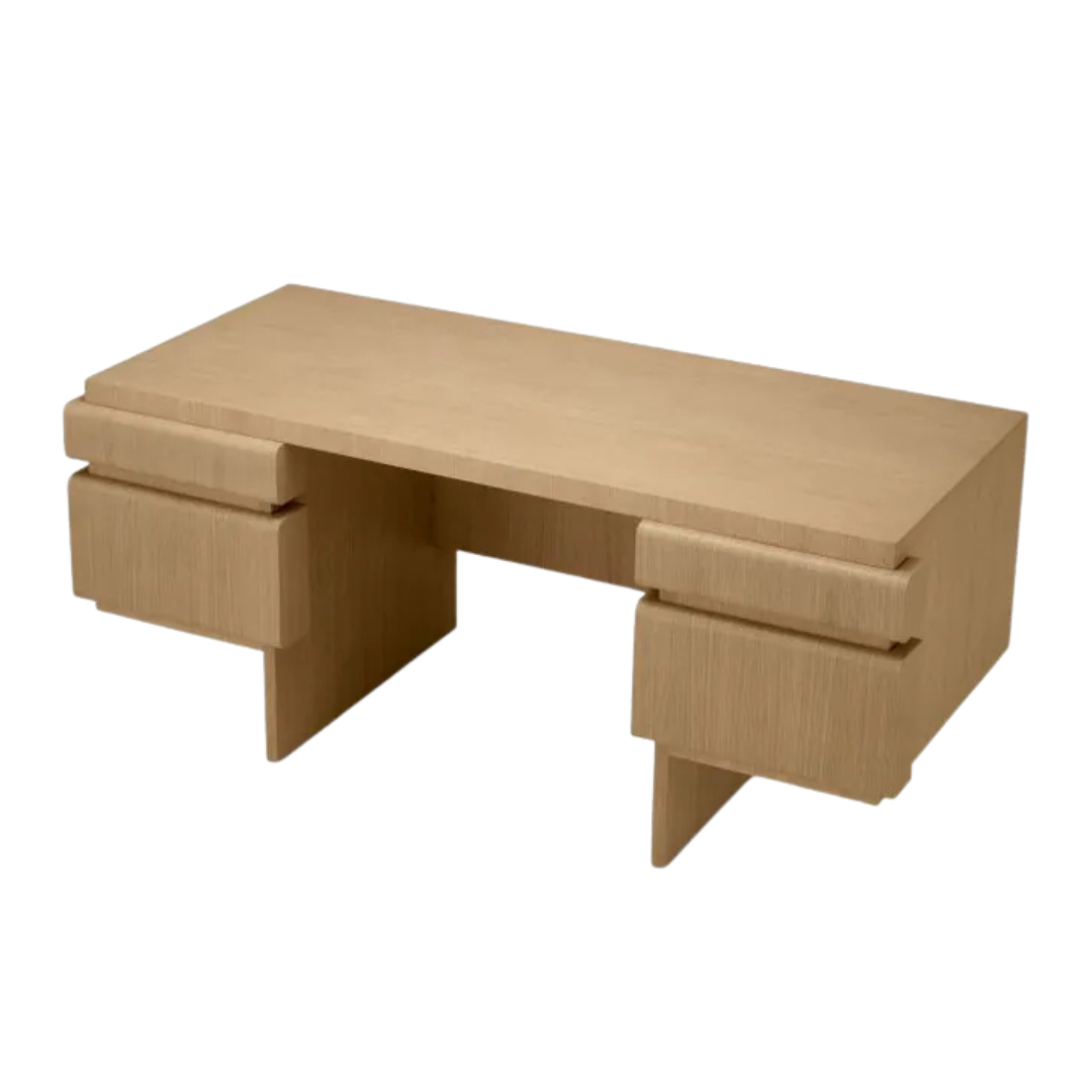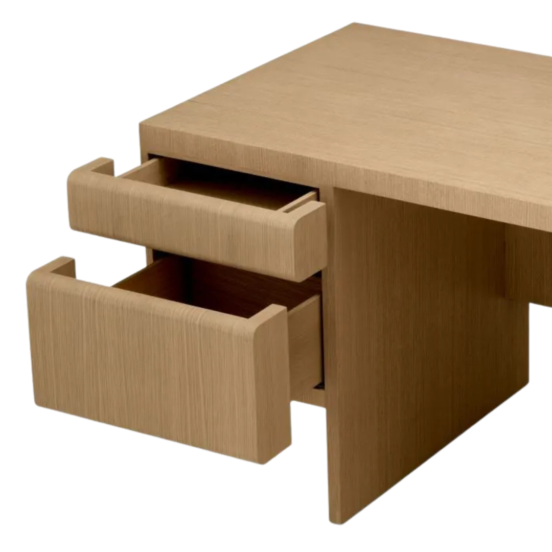 Bemutatjuk a Colston íróasztalt, amelynek természetes tölgyfa furnérja meleg, organikus tónusokat kölcsönöz. Jellegzetes, Soft-Close rendszerrel záródó fiókjai kecsesen túlnyúlnak a kereten, dinamikus formát és tapintható esztétikát kölcsönözve neki. A minimalista design és a tapintható gazdagság harmonikus keverékeként ez a bútor visszafogott luxussal és funkcionális művésziességgel emel ki minden kifinomult munkakörnyezetet.