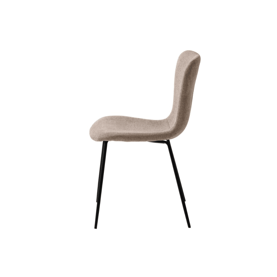 Az Delta szék szövetből készült, puha és kényelmes. A lábak fekete porfestett fémből készültek, amelyek tartósak és mindemellett modern megjelenést biztosítanak. A bézses, világosbarnás szín könnyen illeszkedik a kívánt enteriőrhöz vagy stílushoz. Mérete: 47x85x56 cm.