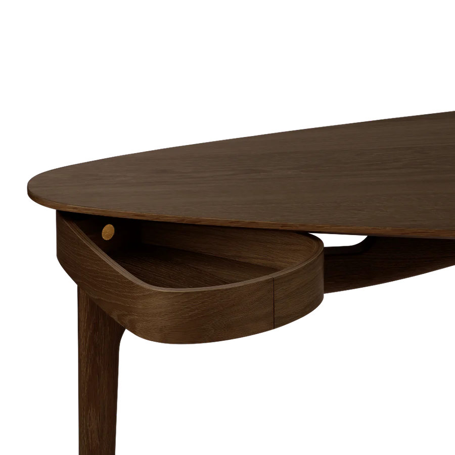 A tölgyfafurnérból készült Duende íróasztal túlmutat az esztétikán, és olyan munkaterületet hoz létre, amely az igazi kreativitás lényegéhez kapcsolódik. A Duende nem csupán egy íróasztalt, hanem egy érzést képvisel - egy olyan minőséget, amely magában foglalja a munkában lévő művész egyre táguló szellemét. A tágas íróasztal lehetővé teszi, hogy megfelelően kibontakozhass, akár táblázatokon, akár a következő nagy kreatív projektjen dolgozol. Az íróasztal egy fiókkal rendelkezik, amely kecsesen kicsúszik az asztallap alól, és kéznél tartja jegyzeteidet vagy írószereidet. Az íróasztal organikus formája légies jelleget kölcsönöz a dizájnnak, így a Duende olyan dizájndarab, amely minden helyiségbe és környezetbe kecsesen illeszkedik.
