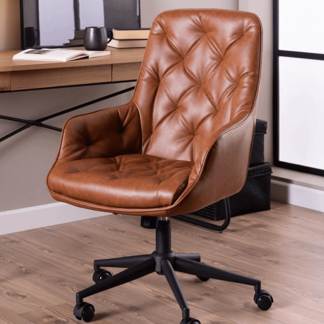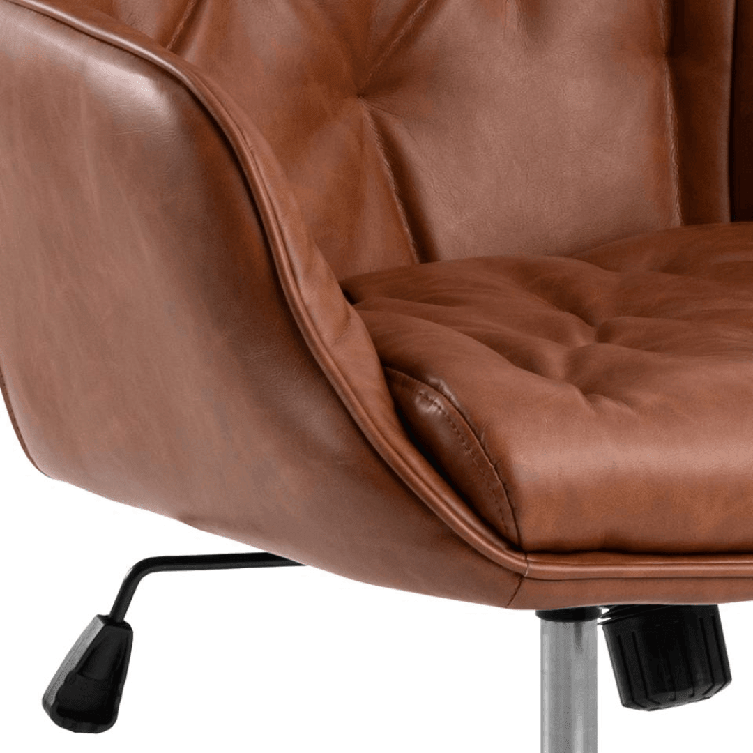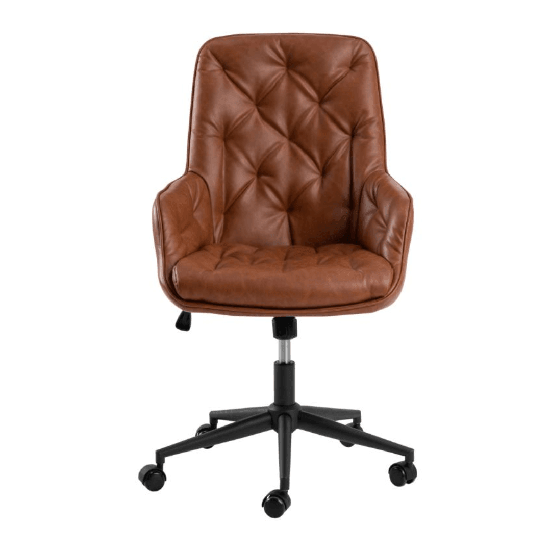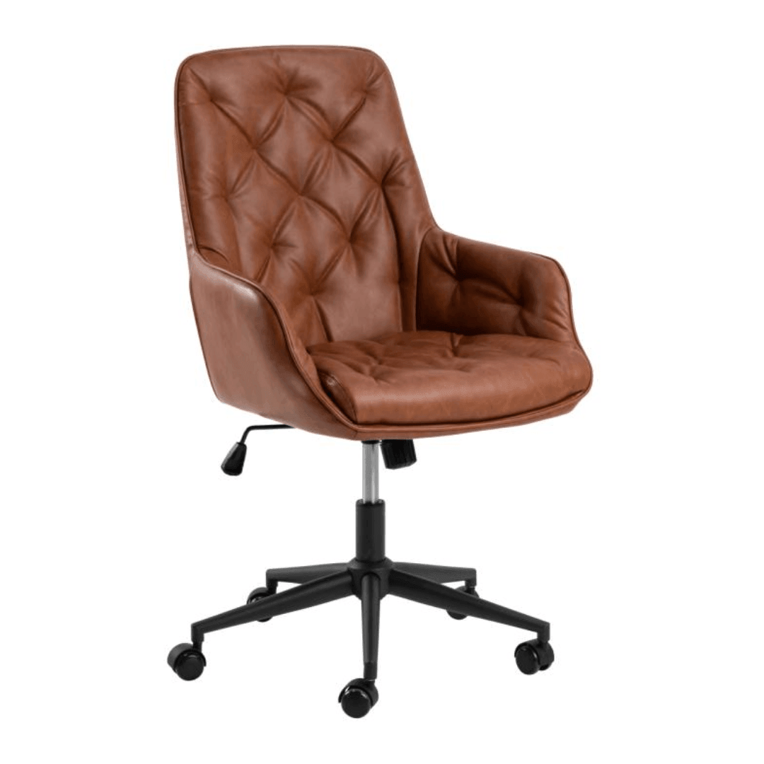 Az Erik kényelmes és stílusos szék tökéletes választás otthoni vagy irodai használatra. 47-57 cm között állítható magasságú és forgatható, így mindenki megtalálhatja a számára legkényelmesebb üléspozíciót. A textilbőr szövet kárpitozás elegáns megjelenést kölcsönöz a széknek, míg a tufting részlet a hagyományosabb és texturáltabb stílus kedvelőinek nyújt különleges élményt. A puha fékezőgörgők megakadályozzák, hogy a szék elmozduljon, ha nincs ráterhelés, így biztonságos és stabil használatot biztosít.
