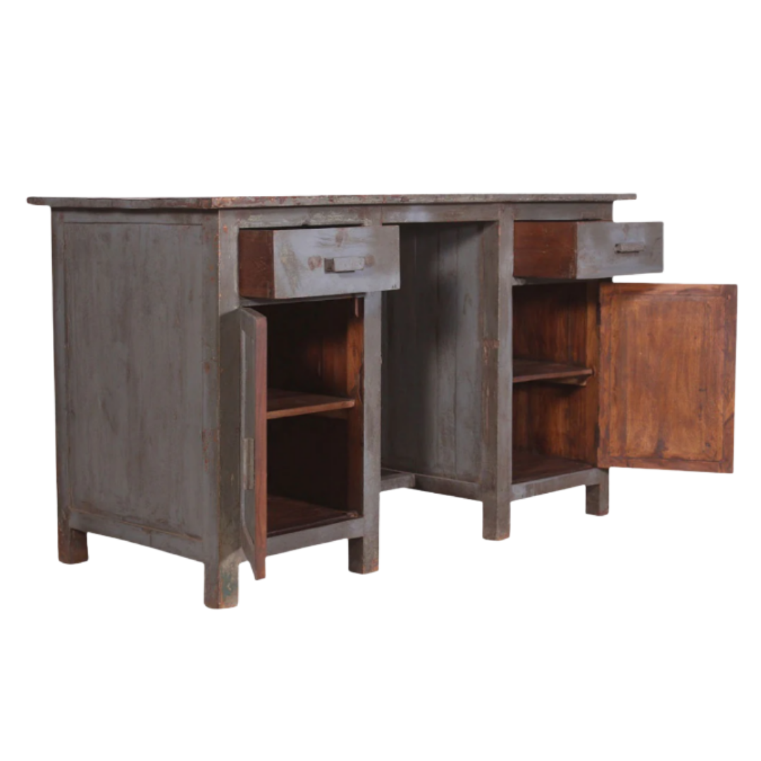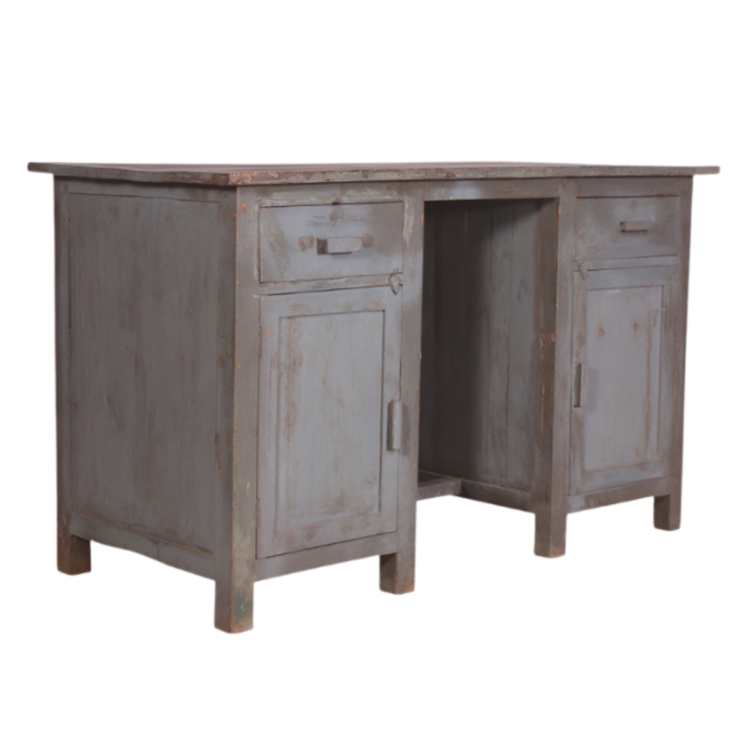 A Grey egy egyedi megjelenésű, vintage stílusú íróasztal ami minden munkaterületet feldob. Újrahasznosított teakfából készül, praktikus tárolórekeszekkel és fiókokkal van ellátva. Ez az exkluzív bútor a Raw Materials egyedi Unique kollekciójának tagja, ami vintage bútorok széles választékával rendelkezik. Sok vintage belsőépítészeti kincsünk Indiából származik, de a világ minden tájára elutazunk, hogy felkutassuk a legszebb darabokat. A bútorokat elhagyott gyárakban, partra mosott hajókon vagy helyi vintage piacokon találjuk. Biztosítunk arról, hogy ezek a különleges bútorok ellenőrzöttek és használatra készen állnak. Minden tárgy őrzi a saját történetét, elég csak megnézni a különböző festékrétegeket vagy a gyönyörű mintázatokat.