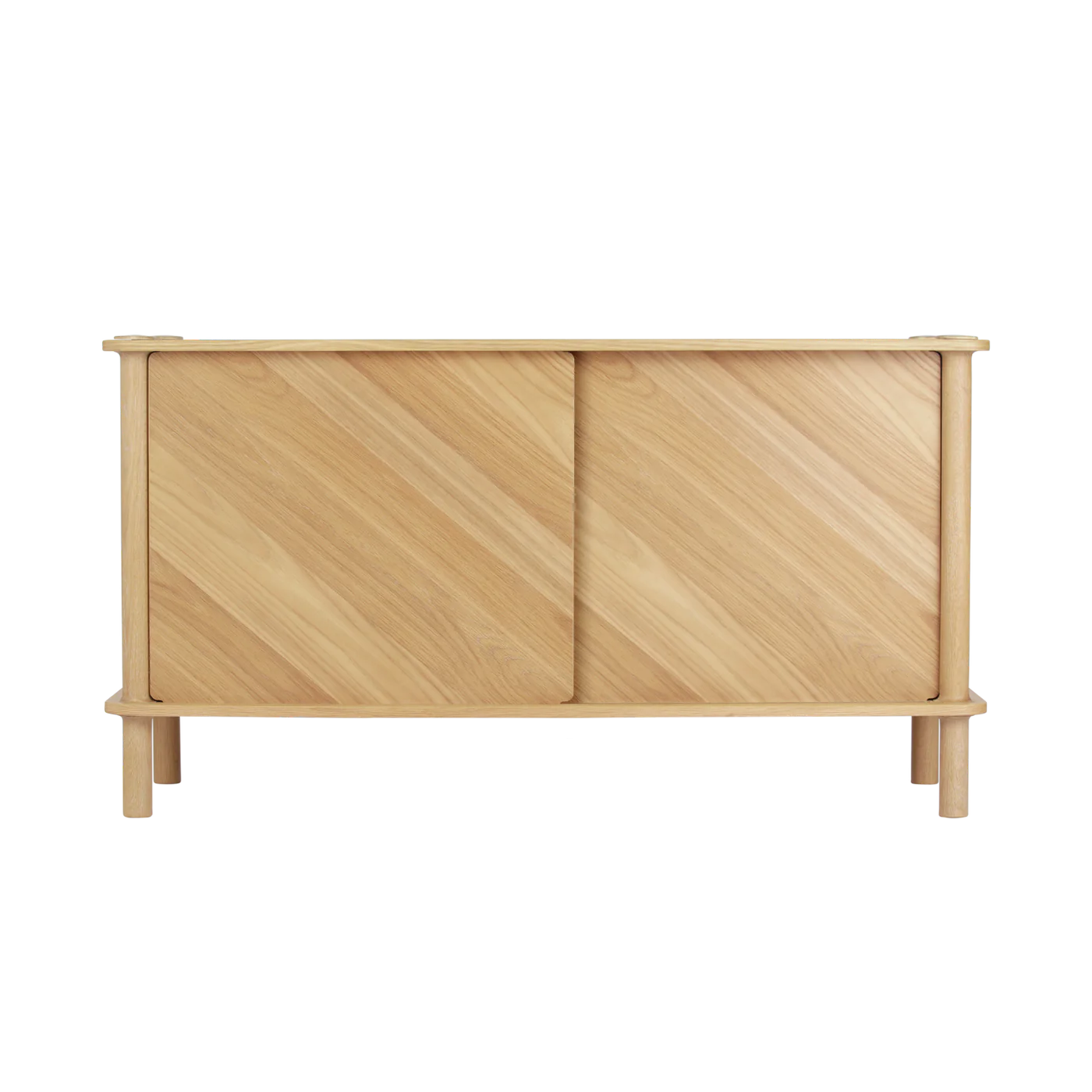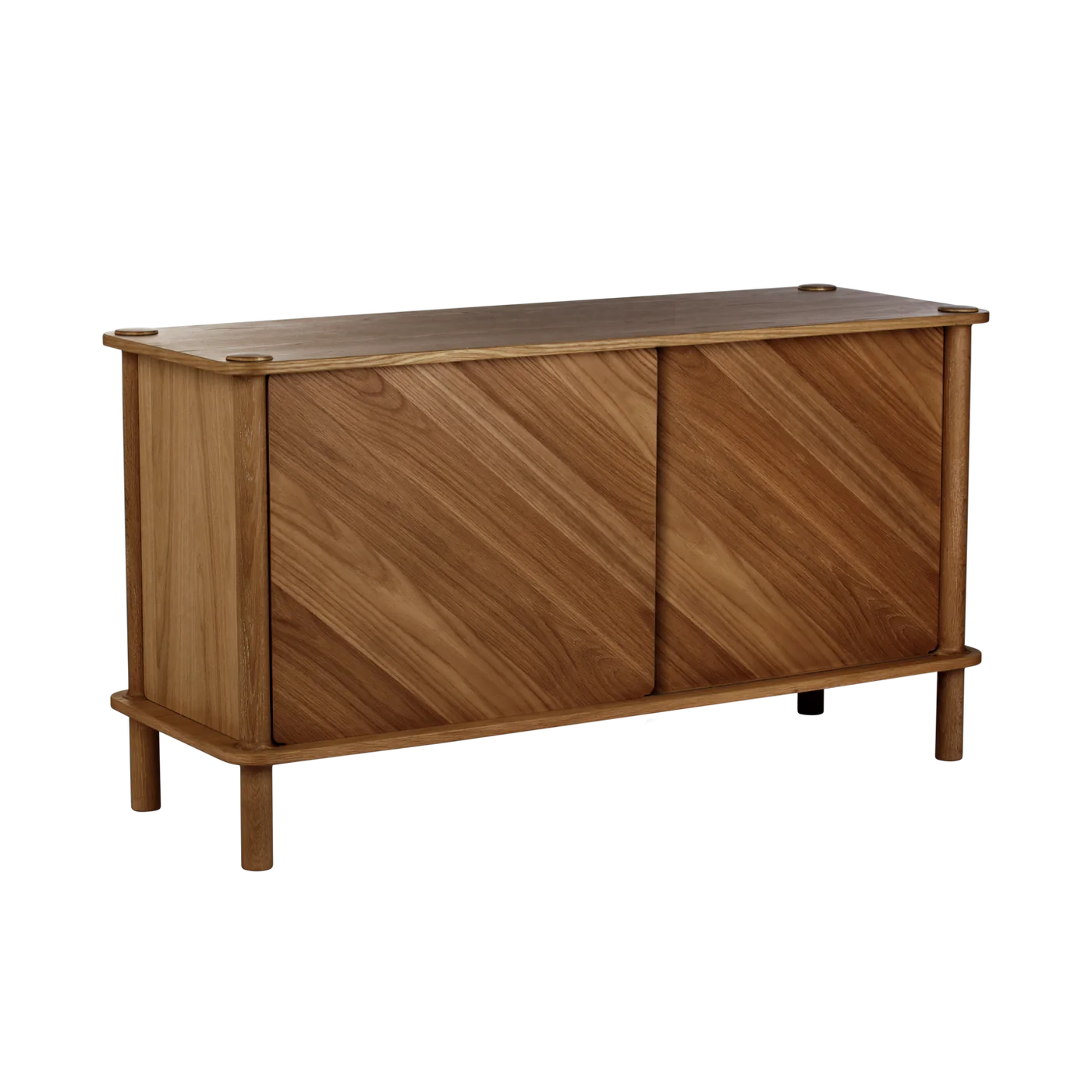 Az Italic kabinet az egyszerűség művészetének bizonyítéka. Ennek az elegáns darabnak a középpontjában a finom lekerekített sarkok állnak, amelyek a szerkezet alapját képezik. Aprólékos figyelmet fordítva a részletekre, a kabinet tömör és furnérozott fából készült, biztosítva a tartósságot és a hosszú élettartamot. A fa ajtók kétoldalasak: Az egyik oldal átlós furnérozott panellel az egyedi megjelenésért, a másik oldal pedig függőleges furnérral az időtlen vonzerőért. Az Italic kabinet a minimalista elegancia és a funkcionalitás tökéletes kombinációjának megtestesítője, és egyedi dizájnelemeinek köszönhetően olyan statement-darab, amely bármilyen belső teret átalakít.