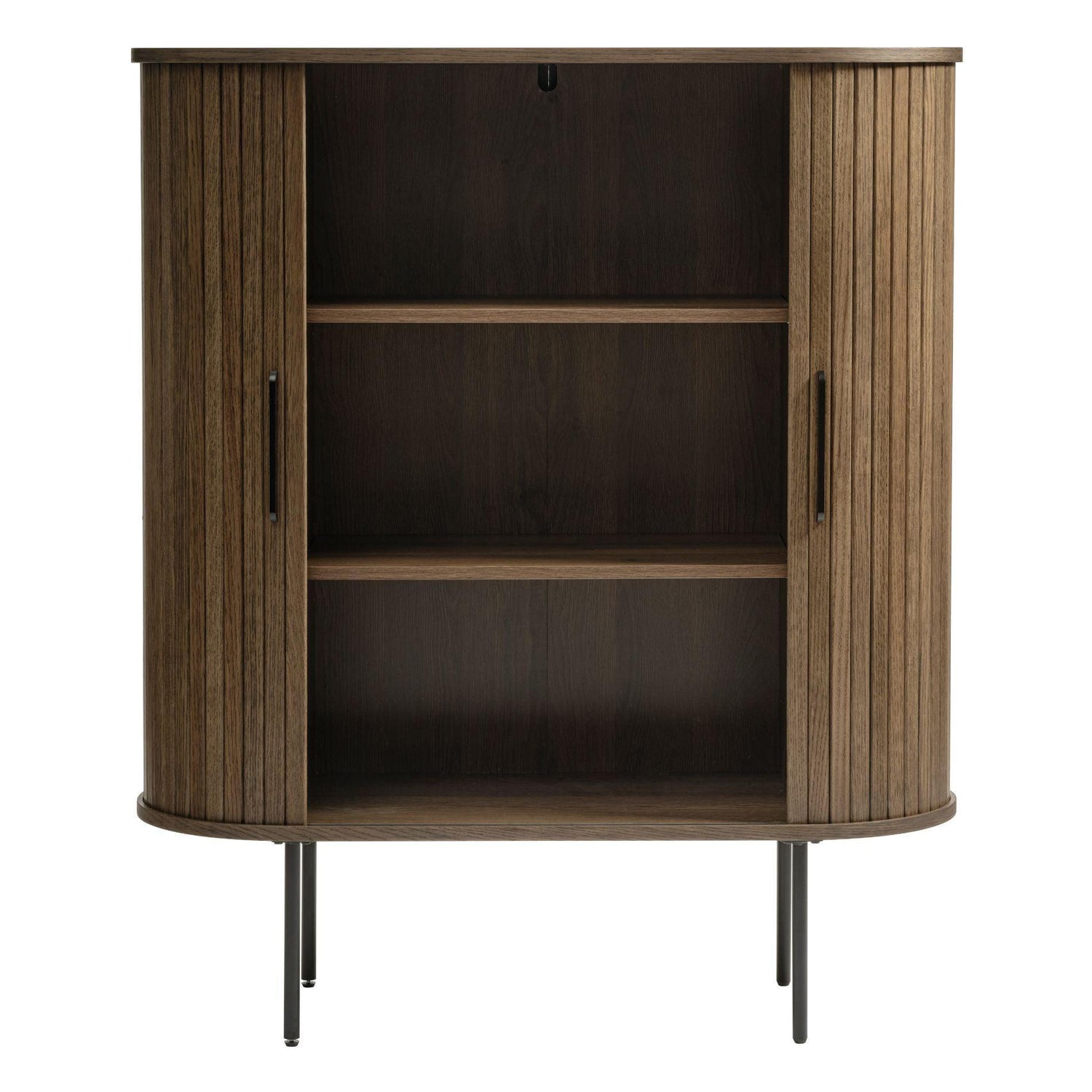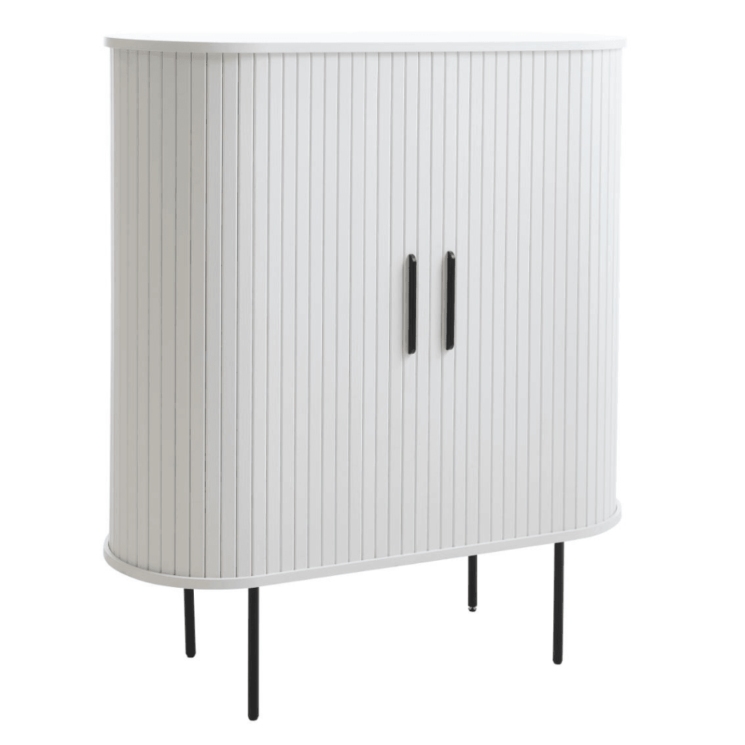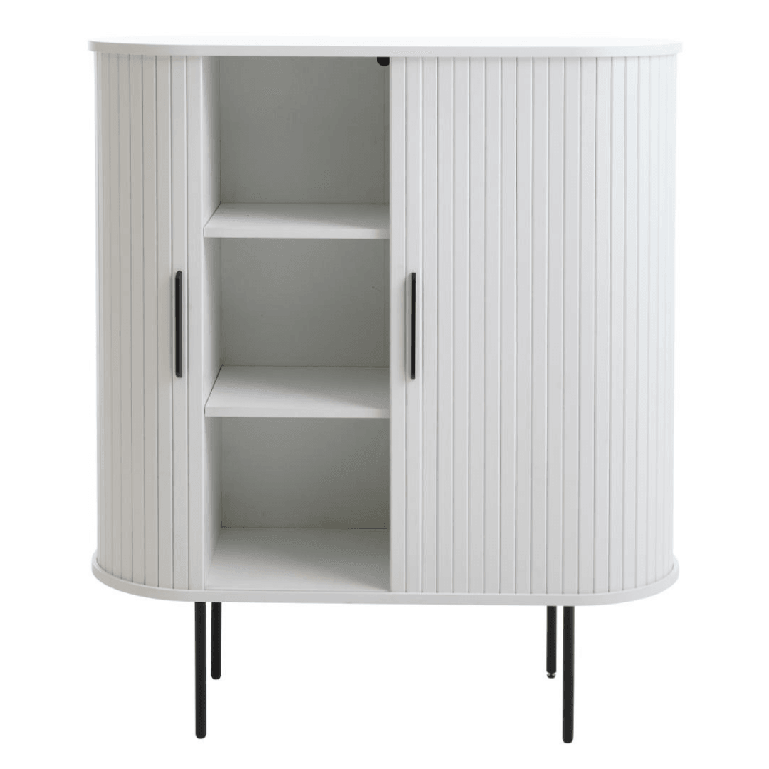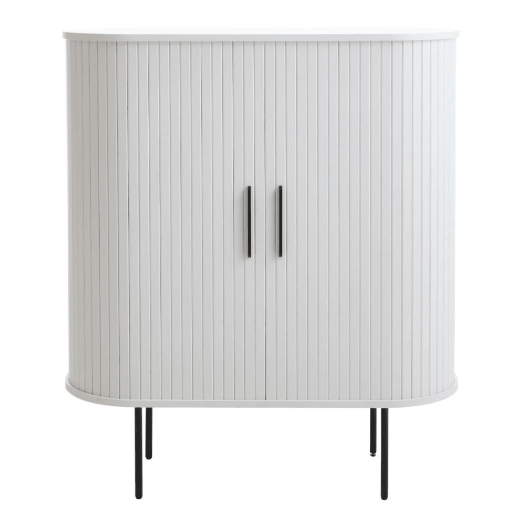 Ez a kabinet egy igazi innováció a modern otthonok számára. A tolóajtók praktikus megoldást nyújtanak a helytakarékos berendezéshez, így tökéletes választás kisebb lakásokba vagy szobákba. A fekete festett fém lábak pedig stabil alapot biztosítanak a kabinetnek, így biztos lehet benne, hogy hosszú évekig szolgálni fogja Önt.