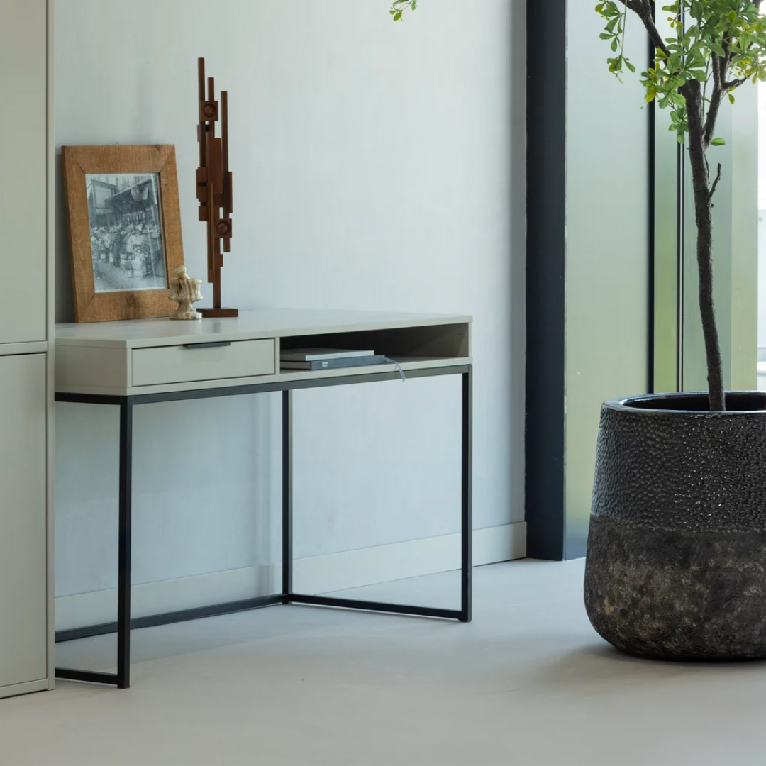 Stílusos, praktikus és modern. Ezek a Nore íróasztal jellemzői. A Nore íróasztal a holland Woood márka kollekciójának része, és saját hollandiai gyárunkból származik. Tedd kényelmessé és stílusossá a munkádat. A fekete fém vázas íróasztal lapja fenyőfából készült, és kétféle színben érhető el.