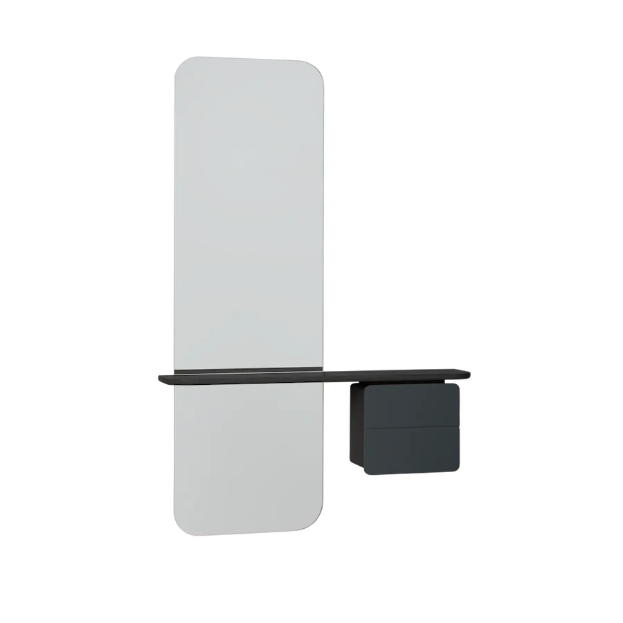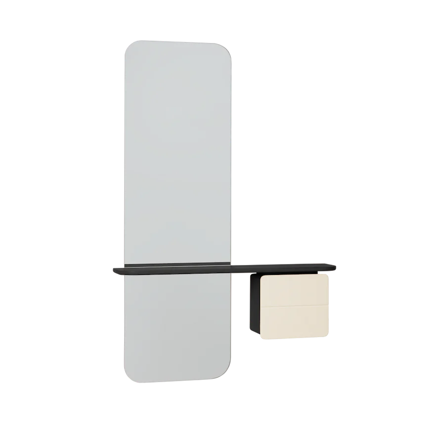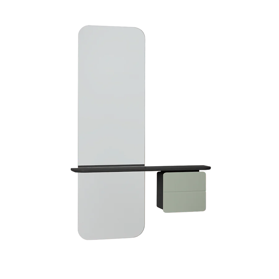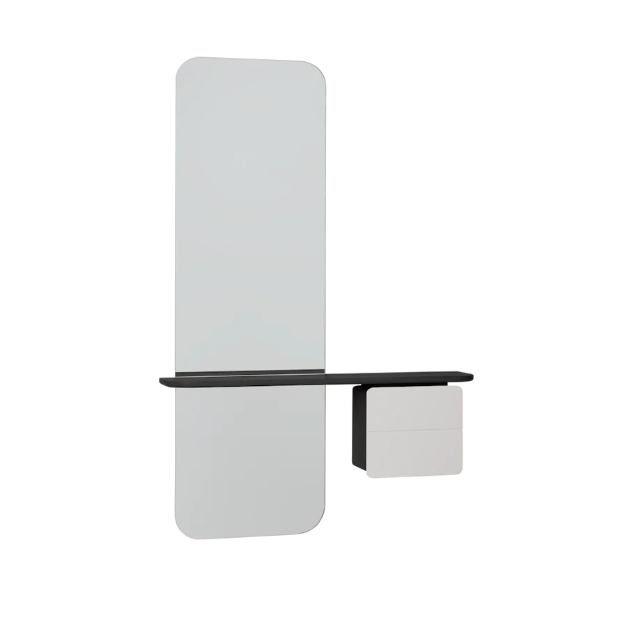 A One More Look egy könnyed és légies tükör, minimalista skandináv hangulattal és számos hozzáadott funkcióval, hogy megfeleljen a városi élet mindennapi igényeinek. A minimális helyet foglaló One More Look ideális minden méretű előszobába, és jól használható a hálószobában vagy szállodákban és irodai folyosókon is. Pontosan a megfelelő magasságával teljes hosszúságú tükörképet kínál a tökéletes utolsó pillantásért, mielőtt elhagyja az otthont. A tükörben egy polc és egy kis szekrény található kézitükörrel és egy bőrtálcával - tökéletes a mindennapi alapvető dolgok, például kulcsok, smink, napszemüveg vagy tartalék érmék tárolására. Akár az a célod, hogy életet lehelj előszobádba, akár az, hogy karaktert adj hálószobádnak, számos lehetőség áll rendelkezésedre. A One More Look-ot úgy tervezték, hogy kiegészítse otthonodat, és olyan teret hozzon létre, ahol az elegancia, a sokoldalúság és a funkcionalitás harmonikusan megfér egymás mellett.