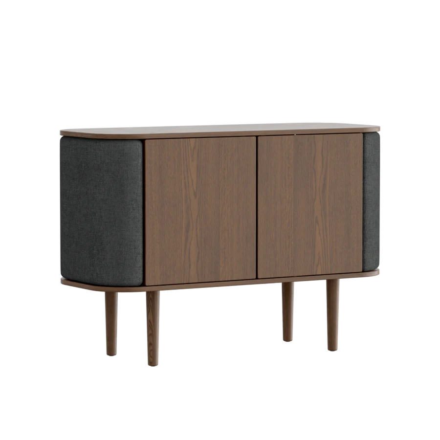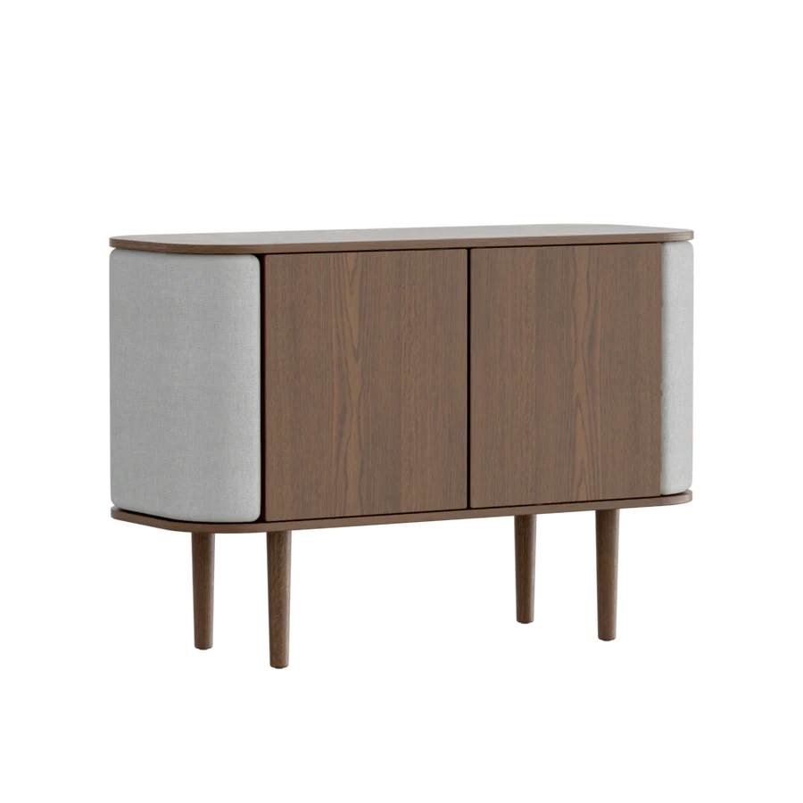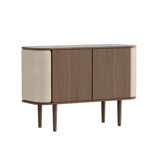 A Treasures egy személyre szabható kabinet, északi stílusjegyekkel. Furnérozott tölgyfából készült és a szekrény ívelt oldalai személyre szabható borítást kaptak, amely egyedivé és puha tapintásúvá teszi a Treasures-t. A szekrény oldalai szárnyakként nyílnak, amelyek elegánsan tárolják a finom likőröket, kozmetikumokat vagy könyveket. A szekrény közepén található tárolórekeszek egy-egy polccal rendelkeznek, így tökéletes tárolási megoldás. A Treasures ajtók cserélhetőek, ami azt jelenti, hogy a kárpitot könnyedén cserélheted és új életet adhatsz a dizájnnak anélkül, hogy egy teljesen új bútordarabot kellene vásárolnod, így kímélve a világ erőforrásait.