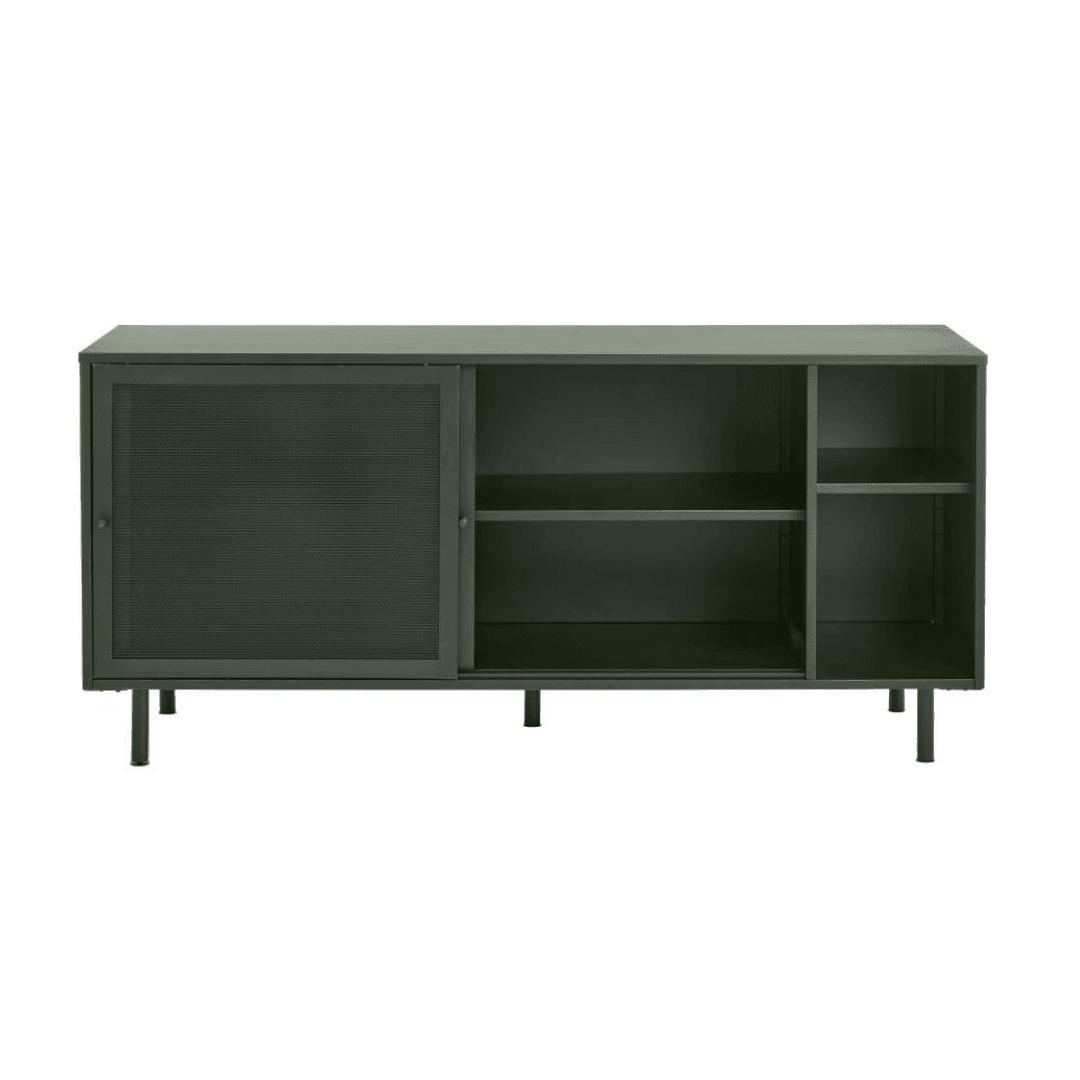 Az elegáns és praktikus Veep kabinet tökéletes választás bármely otthonba vagy irodába. A kabinet fém anyagból készült, ami tartós és könnyen tisztítható. A két tolóajtó és két nyitott polc lehetővé teszi a tárolóhelyek rugalmas használatát. A kabinetben rengeteg hely áll rendelkezésre, így könnyedén elrendezheti a dolgait. Háromféle színben kapható: fekete, világosszürke és sötétzöld, így könnyen illeszthető bármilyen enteriőrbe.