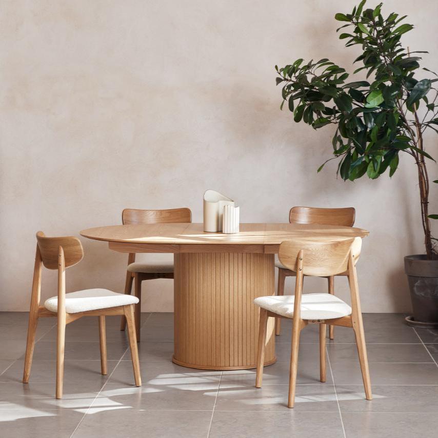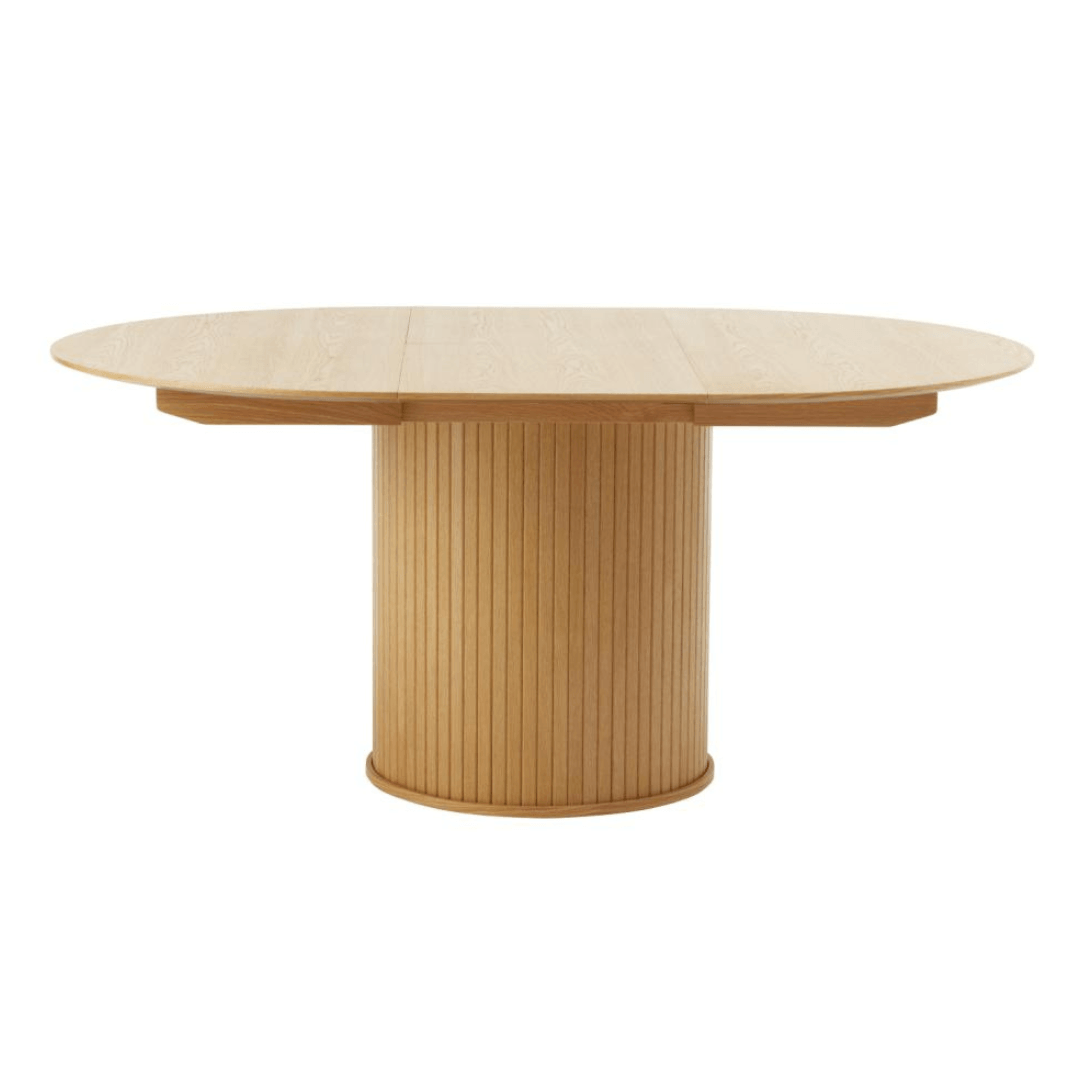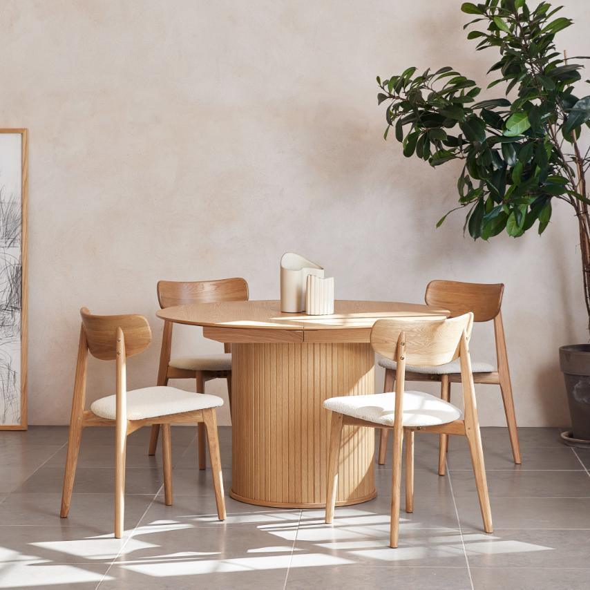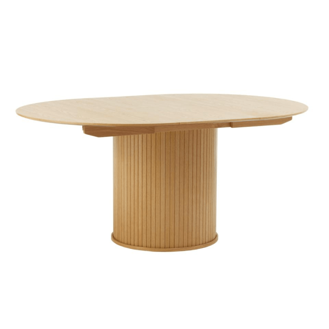 Ha egy elegáns és modern étkezőasztalt keresel, akkor a Nola étkezőasztal tökéletes választás lehet számodra. Az asztallap festett tölgy furnérból készült. Az asztal mérete Ø120 cm, amely 167 cm-re bővíthető. Így rendkívül praktikus, kényelmesen elfér körülötte akár hat személy is. Ha szeretnéd otthonodba varázsolni a skandináv minimalista stílust, akkor a Nola fa étkezőasztal tökéletes választás lehet számodra.