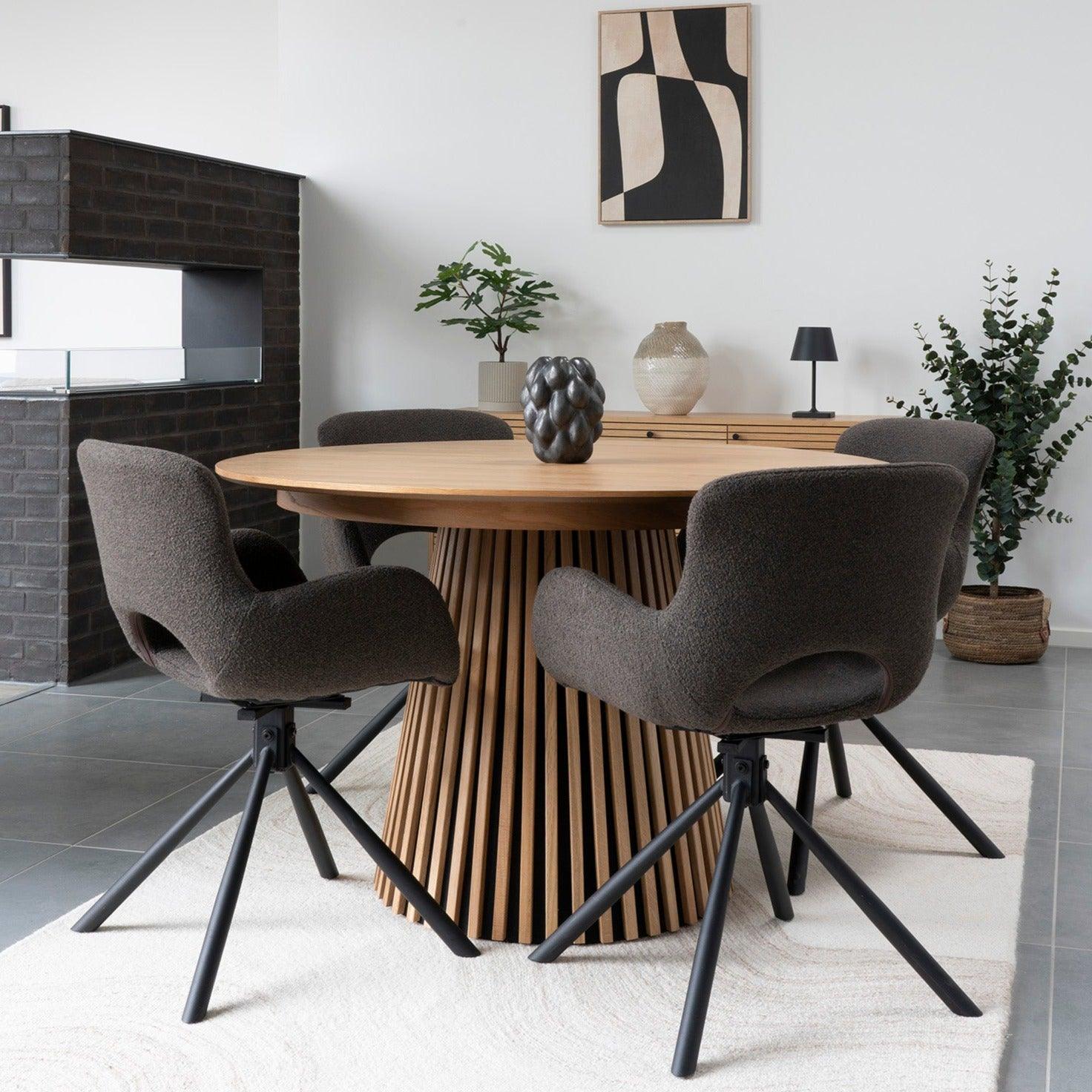 Az Osaka bővíthető fa étkezőasztal egy minőségi és sokoldalú bútor, amely bármilyen étkezőbe tökéletes. Ez a tölgy furnérból készült asztal természetes felülettel büszkélkedhet, amely eleganciát kölcsönöz minden térnek. Két bővítőlappal van felszerelve, így könnyedén beállíthatja az asztal méretét, hogy több vendég elférjen. Alapmérete 120 x 120 cm, amely bővíthető 160, illetve 200 cm-re.