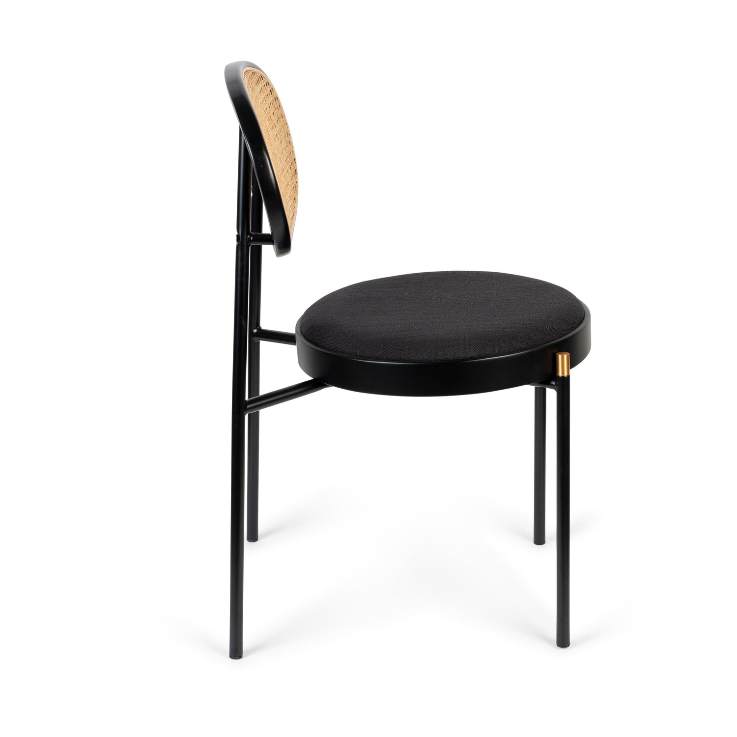 A Don't Stop szék egy modern és egyedi megjelenésű bútor, mely a különböző anyagok elegáns összhatásával varázsolja otthonát vagy irodáját stílusossá. A fekete fém váz stabil és strapabíró alapot biztosít a széknek, míg a rattan támla természetes és meleg hangulatot kölcsönöz a bútornak. Az ülőfelület kényelmesen párnázott, és szintén fekete.