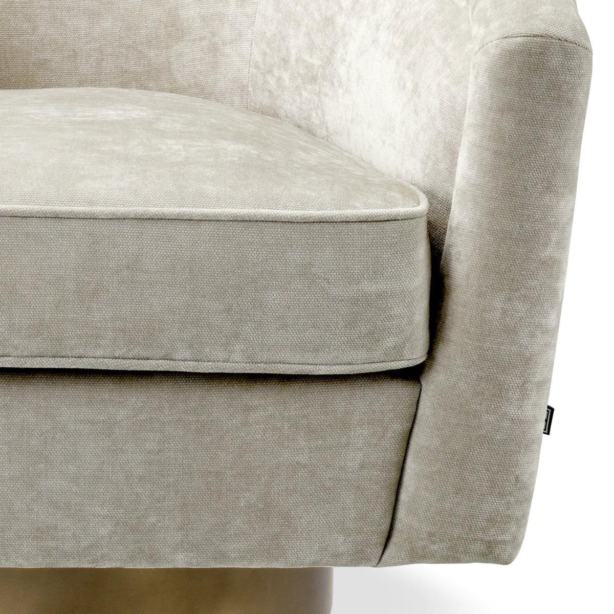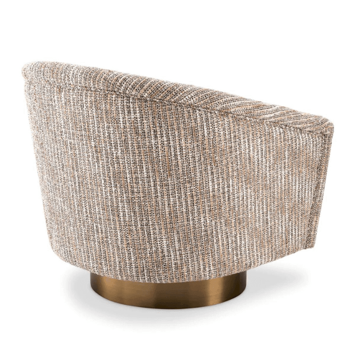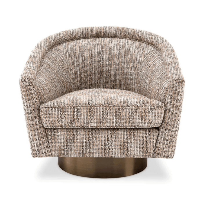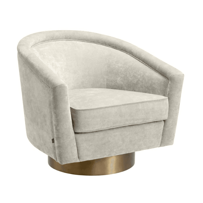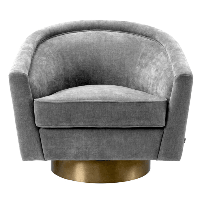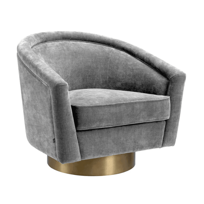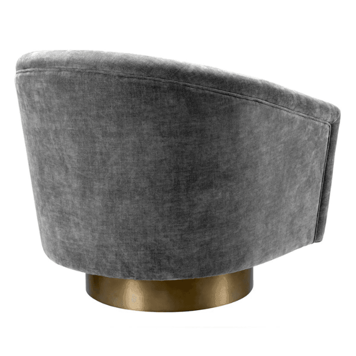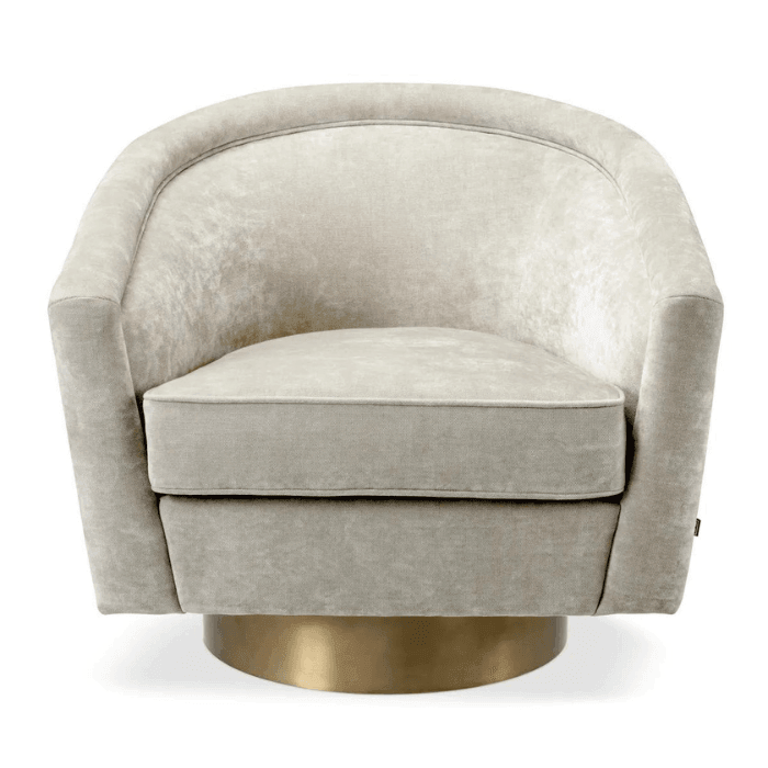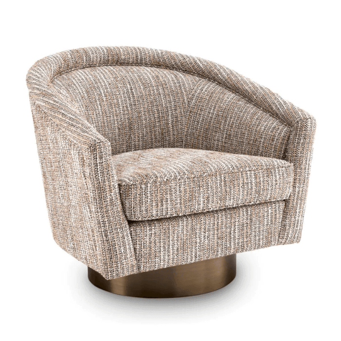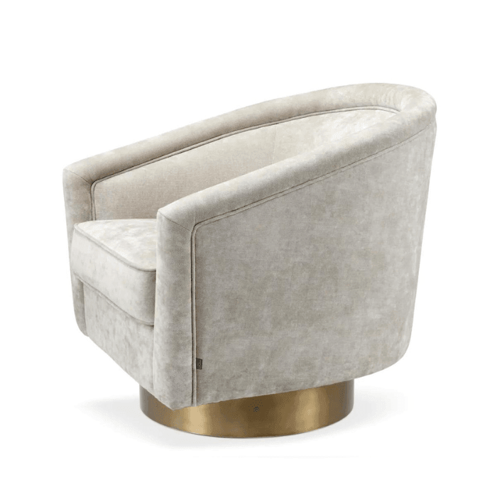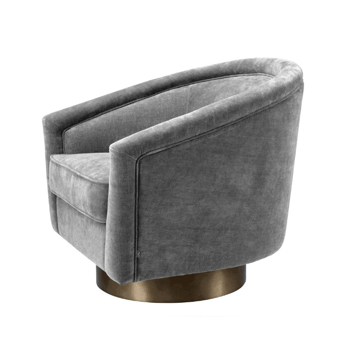 A Catene forgó szövet fotel otthonosan mutat klasszikus és modern enteriőrökben. A sima, ívelt háttámlával és extrán párnázott ülőpárnával, ez a pompás szék a legmagasabb szintű luxus ülési élményt biztosítja. Ez az elegánsan ívelt forgó fotel minőségi kárpitozással és matt sárgaréz forgó talppal rendelkezik. A fotel többféle színben is elérhető, így könnyedén igazítható bármilyen belső térhez. Tökéletes választás nappalidba, hálószobádba vagy akár irodádba is, ahol a stílus és a kényelem egyaránt fontos.