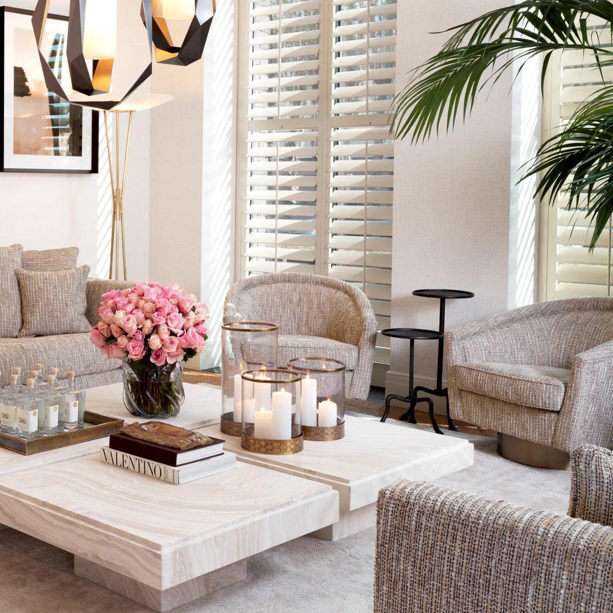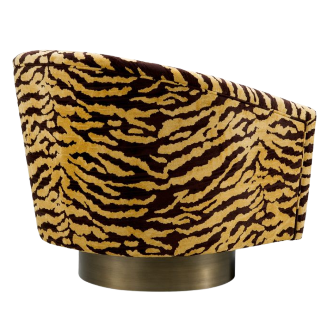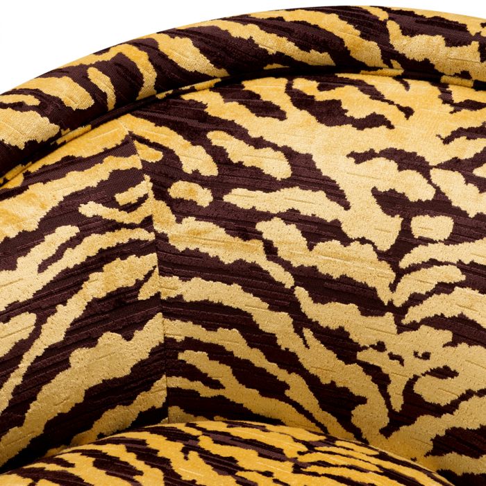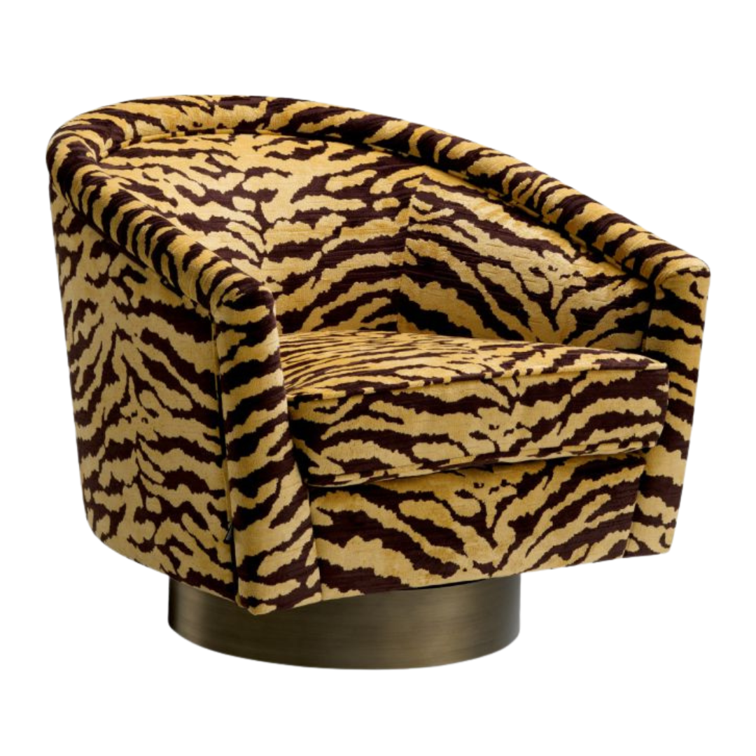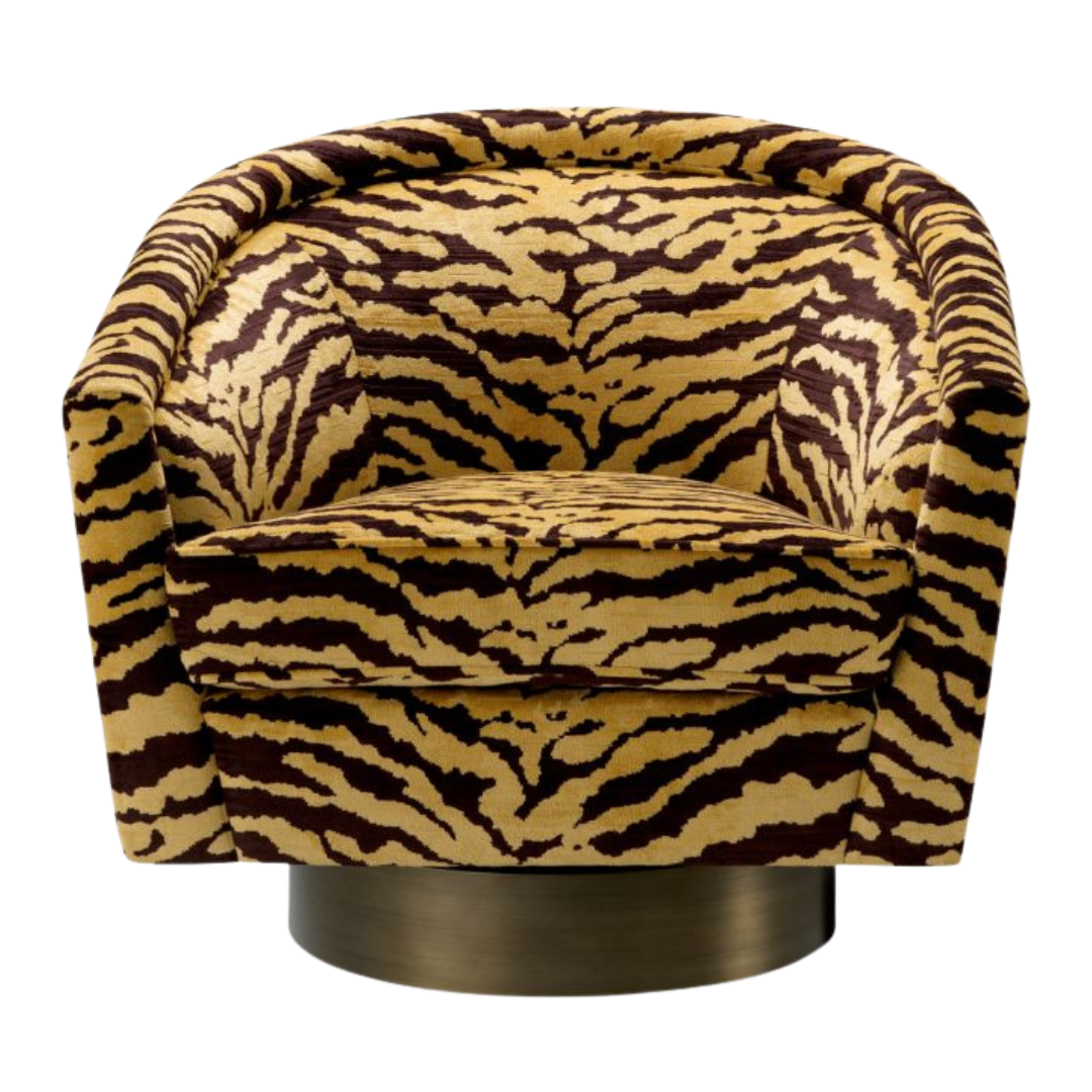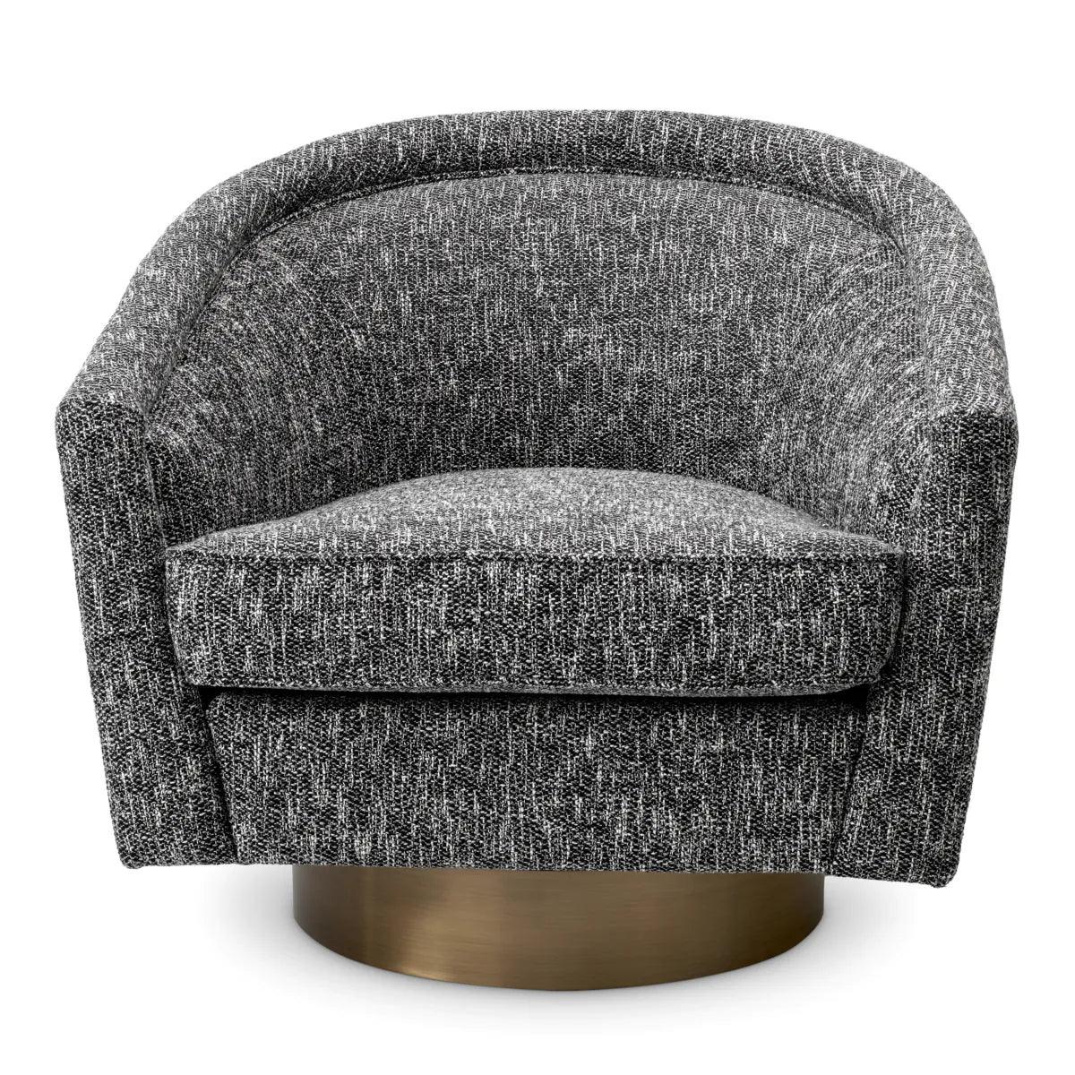 A Catene forgó szövet fotel otthonosan mutat klasszikus és modern enteriőrökben. A sima, ívelt háttámlával és extrán párnázott ülőpárnával, ez a pompás szék a legmagasabb szintű luxus ülési élményt biztosítja. Ez az elegánsan ívelt forgó fotel minőségi kárpitozással és matt sárgaréz forgó talppal rendelkezik. A fotel többféle színben is elérhető, így könnyedén igazítható bármilyen belső térhez. Tökéletes választás nappalidba, hálószobádba vagy akár irodádba is, ahol a stílus és a kényelem egyaránt fontos.