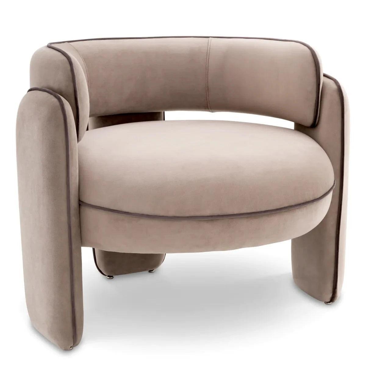 A Chaplin bársony fotel ívelt formájának köszönhetően a tiszta kifinomultság hangulatát idézi. Ez a stílusos, modern ülőalkalmatosság időtlen vonzerőt áraszt. A fotel puha bársony kárpitozása luxus érzetet kelt, miközben maximális kényelmet biztosít. A pazar színű bársony kárpitozás hozzáillő szegélydíszt kapott, így egy igazán ízléses, ugyanakkor visszafogott kialakítású ülőalkalmatosság érzetét kelti.