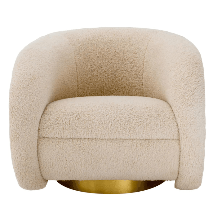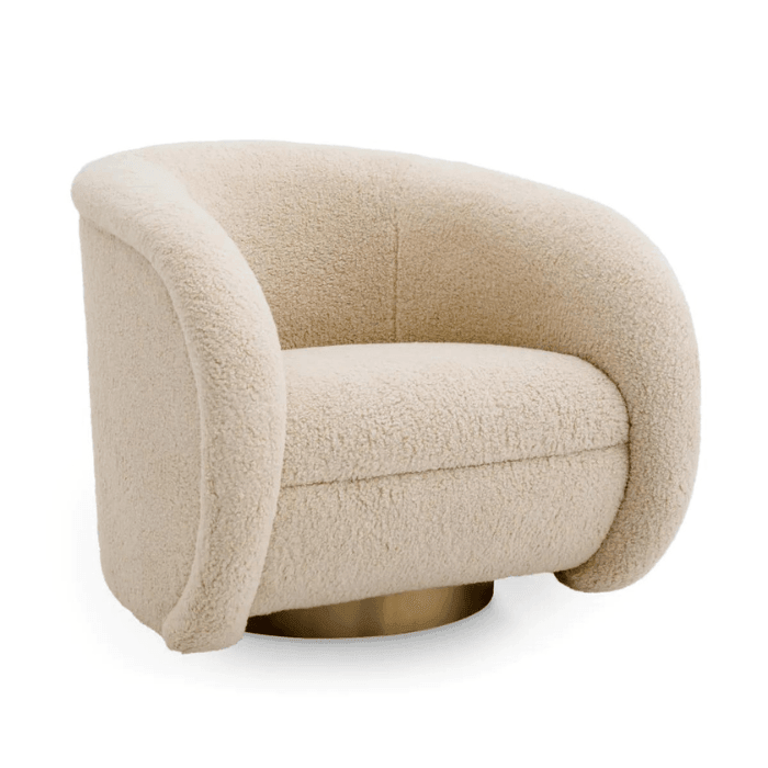 A Cristo forgó szövet fotel gyönyörű íveit puha tapintású, műszőrme kárpitozás és szálcsiszolt sárgaréz forgótalp egészíti ki, ami igazán elegánsan mutat. Ennek a kecses fotelnek a lenyűgöző stílusát a kör alakú ülést körülölelő lejtős íveben áramló kar- és háttámla határozza meg. Nemcsak elegáns, de praktikus választás is, amely hozzájárul a helyiség kifinomult megjelenéséhez. Elbűvölő és kényelmes kiegészítője lesz otthonodnak!