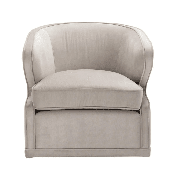 Egészítsd ki otthonod a vintage stílusú Dorset forgó szövet fotellel. A világosszürke kárpitozással és hozzáillő szegélydísszel rendelkező, gyönyörű retró dizájnú fotel kényelmes ülést biztosít. A forgó talp maximális rugalmasságot biztosít, így a szék bármelyik helyiség praktikus központi eleme lehet. Tökéletes választás azok számára, akik a régi idők eleganciáját és kényelmét keresik modern köntösben. Az elegáns formatervezés és a puha kárpit nemcsak kényelmet, hanem stílust visz otthonodba.