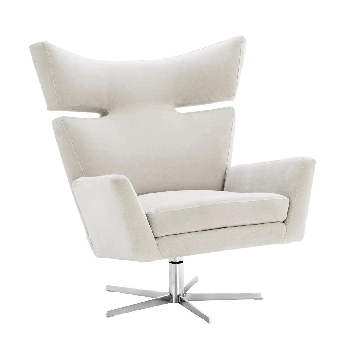 Magas és szárnyszerű háttámlájával az Eduardo forgó szövet fotel egyszerre kényelmes és stílusos darab. Rozsdamentes acélból készült, fényes felületű talprésze öttalpú dizájnnal rendelkezik, amely lehetővé teszi a felette elhelyezkedő ülés forgatását. Kiváló választás a modern és elegáns belső terekhez. Az ergonomikus kialakítás biztosítja a hosszú távú kényelmet, míg a magas háttámla extra támaszt nyújt. A prémium anyagok és a kifinomult dizájn kombinációja garantálja, hogy ez a szék bármelyik helyiség fókuszpontja lesz.