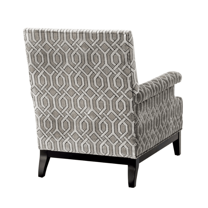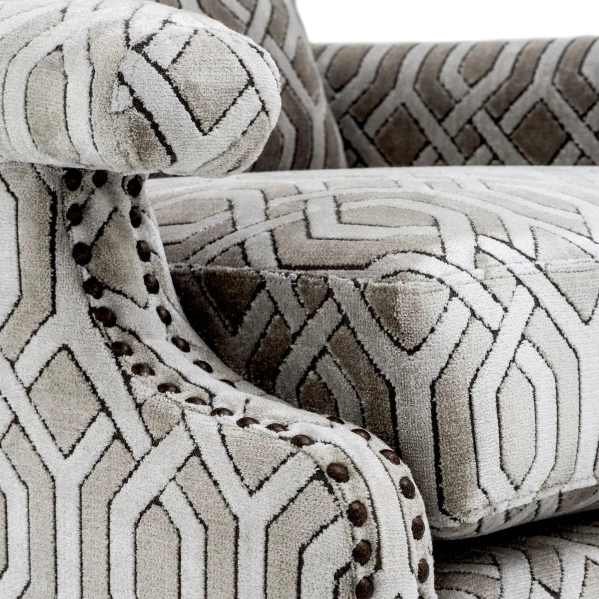 Hangsúlyozd ki otthonod dekorációjának szépségét a Goldoni bársony fotel segítségével. A geometrikus textíliák ihlette luxus fotel izgalmas mintázatú, rácsos hatású kárpitozással rendelkezik. Magas háttámláját egy kényelmes, párnázott ülőpárna és egy kisebb párna egészíti ki a páratlan kényelem érdekében. A lekerekített karok és a szögletes háttámla széleit antik bronz szegecsek díszítik, teljessé téve a fotel megjelenését.
