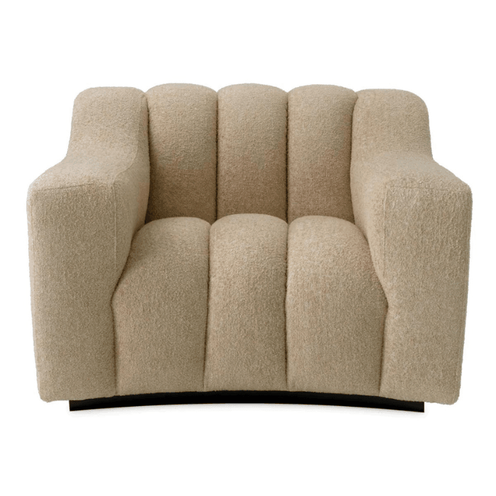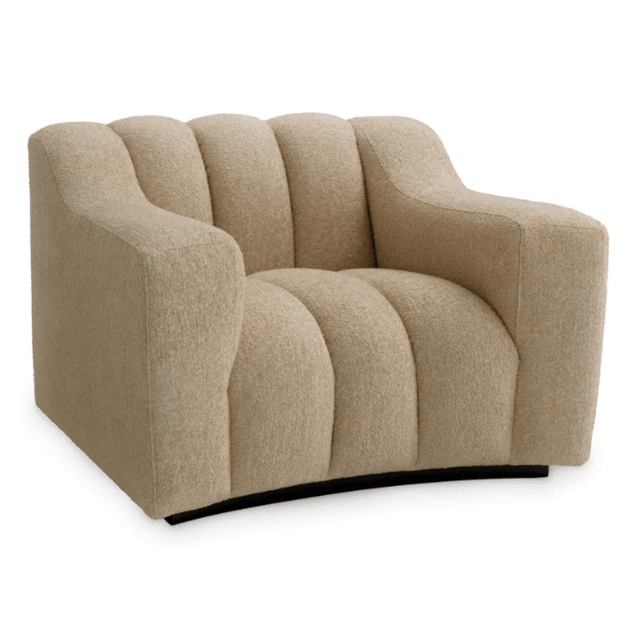 A fekete lábakon nyugvó Kelly szövet fotel bájt és melegséget áraszt otthonodba. Finoman ívelt kialakításával nagyon kényelmes ülőhelyet kínál. Az ülőfelület és a háttámla aprólékosan kidolgozott kárpitozása mély, csatornás varrással készült. A tiszta vertikális vonalvezetésnek köszönhetően vonzó, dimenzionális hatást kelt. Elegáns és időtálló dizájnjával bármelyik nappali központi darabja lehet.