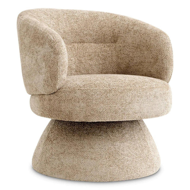A buja anyagok és az ívelt, modern forma a kifinomult gazdagság érzetét kölcsönzi a Liberty forgó szövet fotelnek. A puha, párnázott fotel homokszínű kárpitozással rendelkezik. Ergonomikus kialakítása révén maximális kényelmet nyújt, ugyanakkor remek díszítő elem is otthonodba, amely teljessé teszi a teret. Az egyedi dizájn és a minőségi anyagok révén ez a fotel bármelyik helyiséget különlegessé teszi.