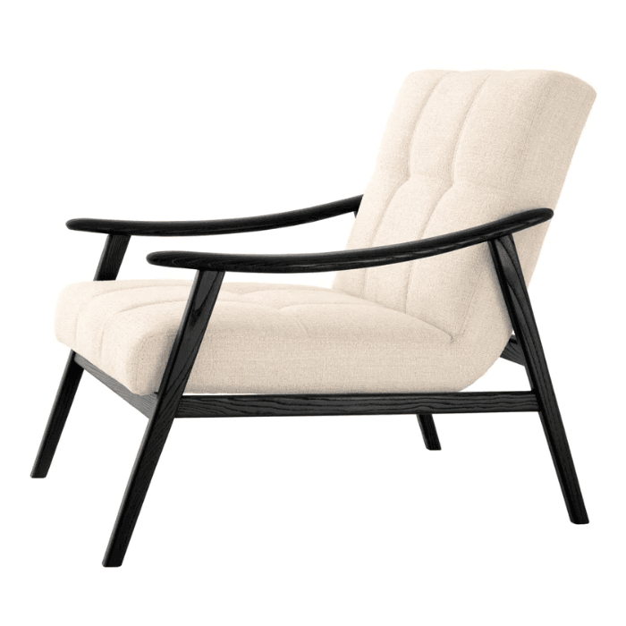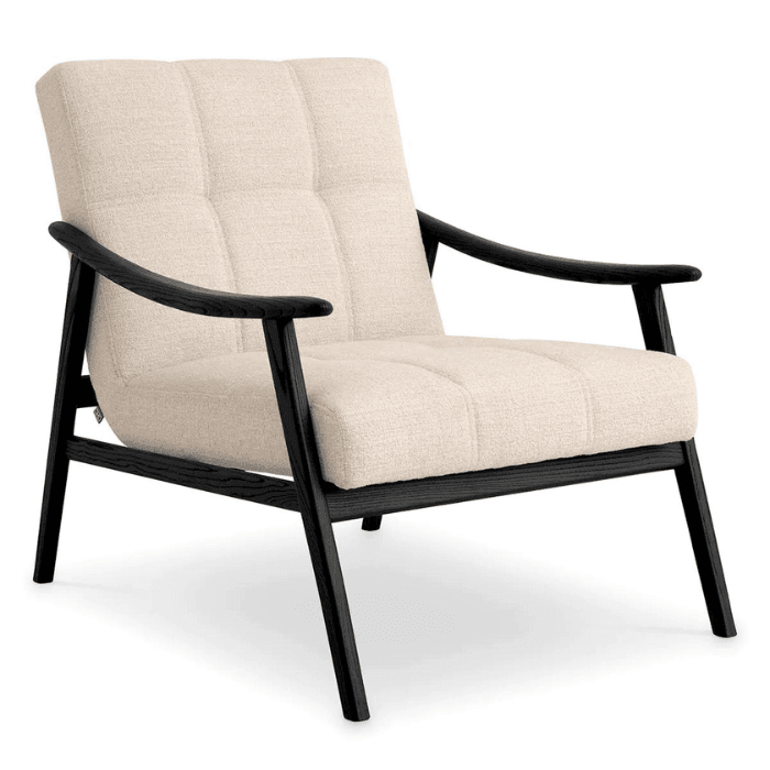A Mortensen szövet fotel őrzi az eredeti skandináv dizájn fotelek ikonikus stílusát. A tökéletesen kiegyensúlyozott és tömör fekete faváz egy igazi modern ipari szépséget képvisel. A széles és elegáns fa kereten látszik a természetes erezet. A kontrasztos hatás érdekében bézs színű kárpitozással készült. Színpalettája révén bármilyen lakberendezési stílushoz illeszkedik. Tökéletes választás egy délutáni pihenéshez.