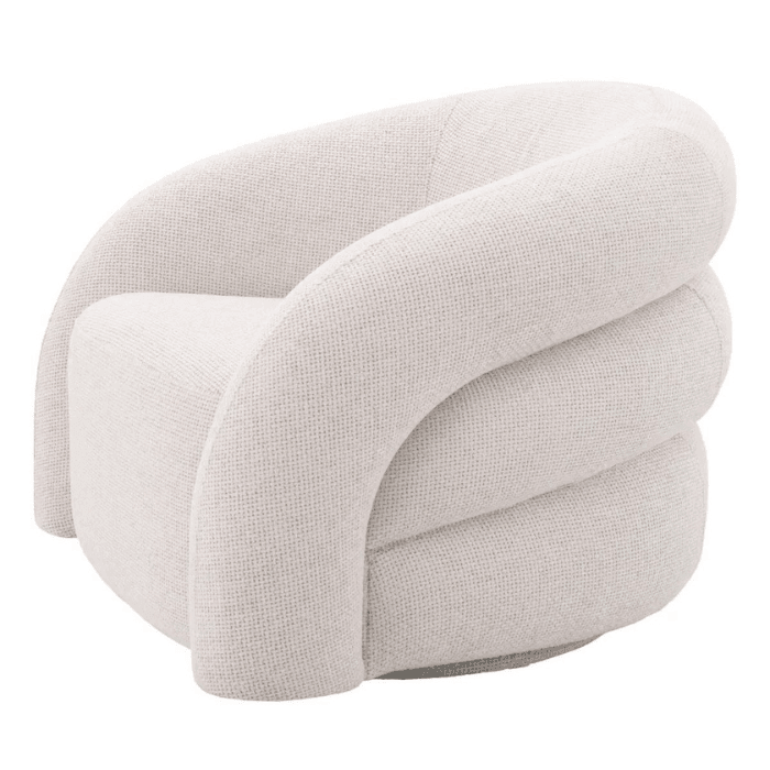 A Novelle forgó szövet fotelt a 1970-es és 1980-as évek posztmodern olasz dizájnbútorai inspirálták. Ez a merész és figyelemfelkeltő fotel könnyedén kitűnik szoborszerű formájával. Könnyedén beilleszthető bármilyen kortárs vagy eklektikus stílusú enteriőrbe. Gyönyörű szövet kárpitozás fedi különleges domborulatait. Tökéletes kiegészítője lehet bármely nappalinak vagy dolgozószobának, ha különleges hangulatra vágysz.