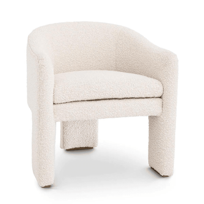 A Pebbles buklé fotel rendkívüli dizájnjával egy igazán elragadó darab. Tökéletes kiegészítője bármely modern vagy retro stílusú enteriőrnek. Gyönyörű krémszínű, puha tapintású, buklé kárpitozással rendelkezik. Kád formára emlékeztető ülőfelülete három széles lábon nyugszik. A fotel könnyedén kombinálható más Eichholtz bútorokkal a tökéletesen harmonikus megjelenés érdekében.