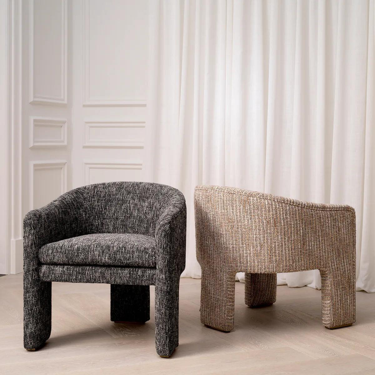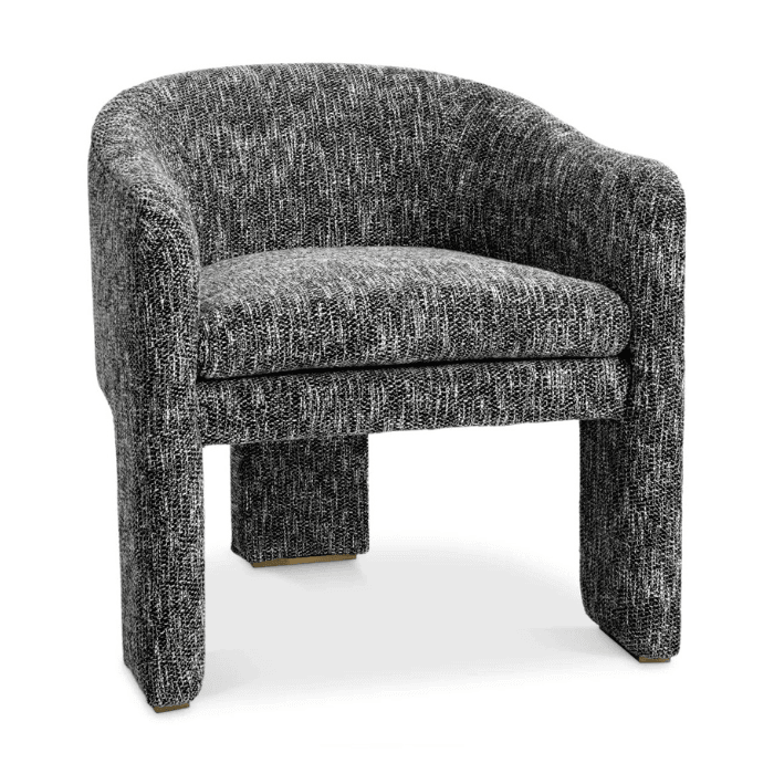 A Pebbles szövet fotel rendkívüli dizájnjával egy igazán elragadó darab. Tökéletes kiegészítője bármely modern vagy retro stílusú enteriőrnek. Kád formára emlékeztető ülőfelülete három széles lábon nyugszik. A fotel könnyedén kombinálható más Eichholtz bútorokkal a tökéletesen harmonikus megjelenés érdekében.