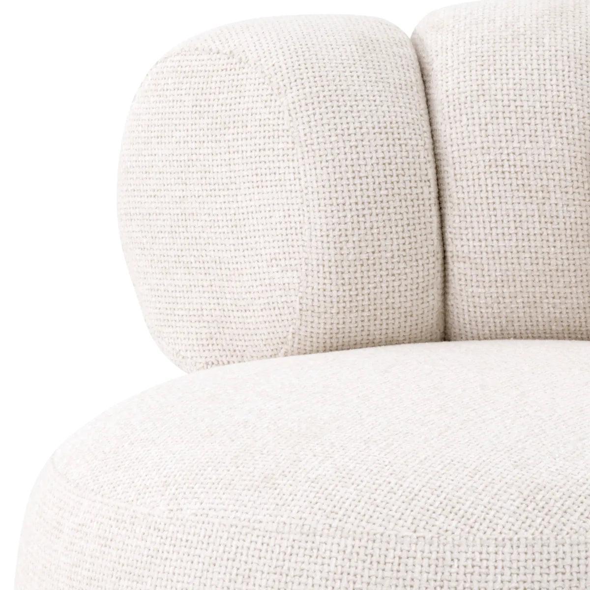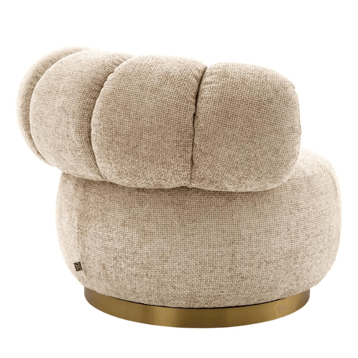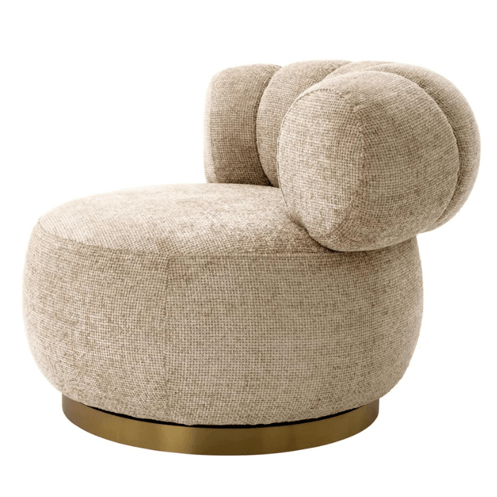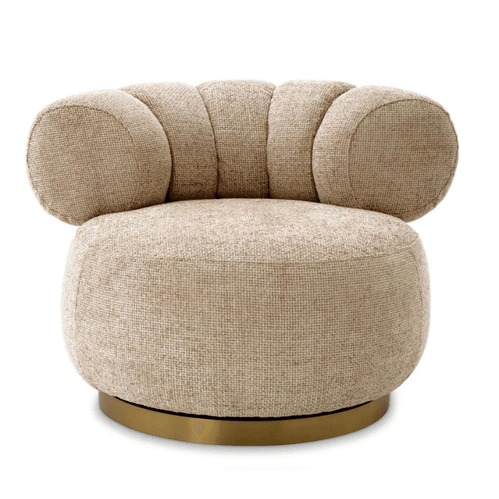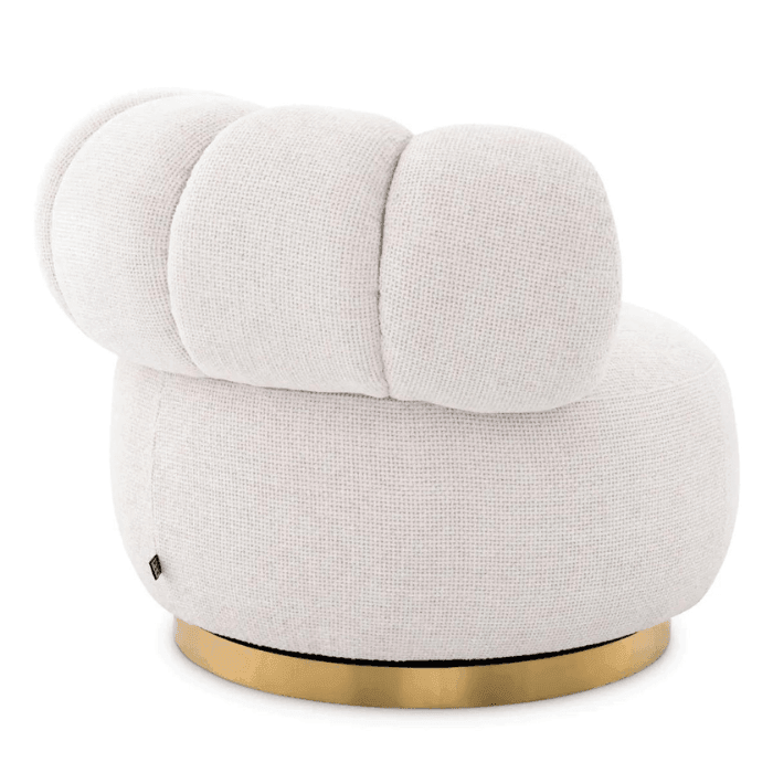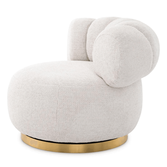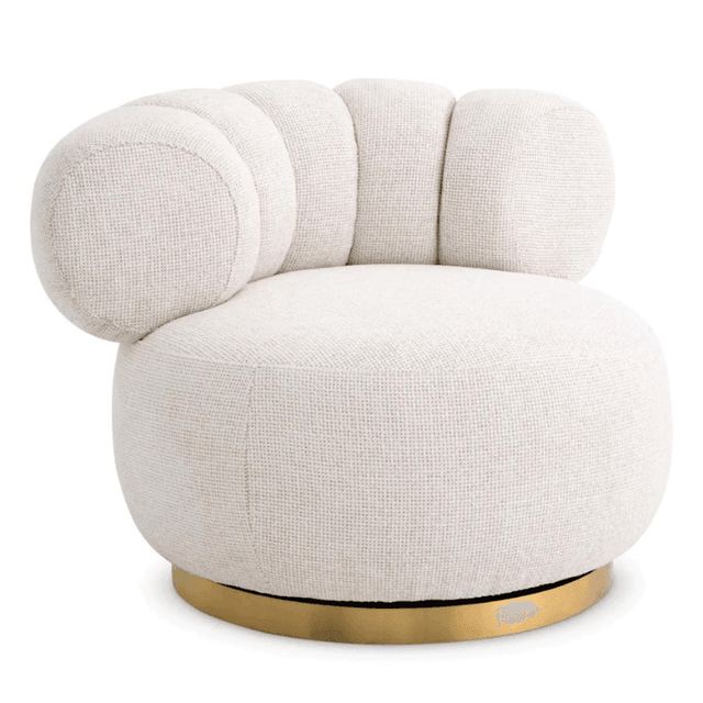 A Phedra forgó szövet fotel ikonikus vonzerejét és népszerűségét nagy méretének köszönheti. A texturált anyaggal kárpitozott és matt sárgaréz forgó talppal rendelkező fotel lehetővé teszi, hogy bármelyik irányba elfordulj anélkül, hogy fel kellene állnod. Organikus formájából fakadóan megnyugtató biztonságérzetet nyújt, így tökéletes hely a bekuckózásra. Tökéletes választás, ha egy jó könyvet olvasnál, vagy egy meghitt estét töltenél a kandalló mellett.