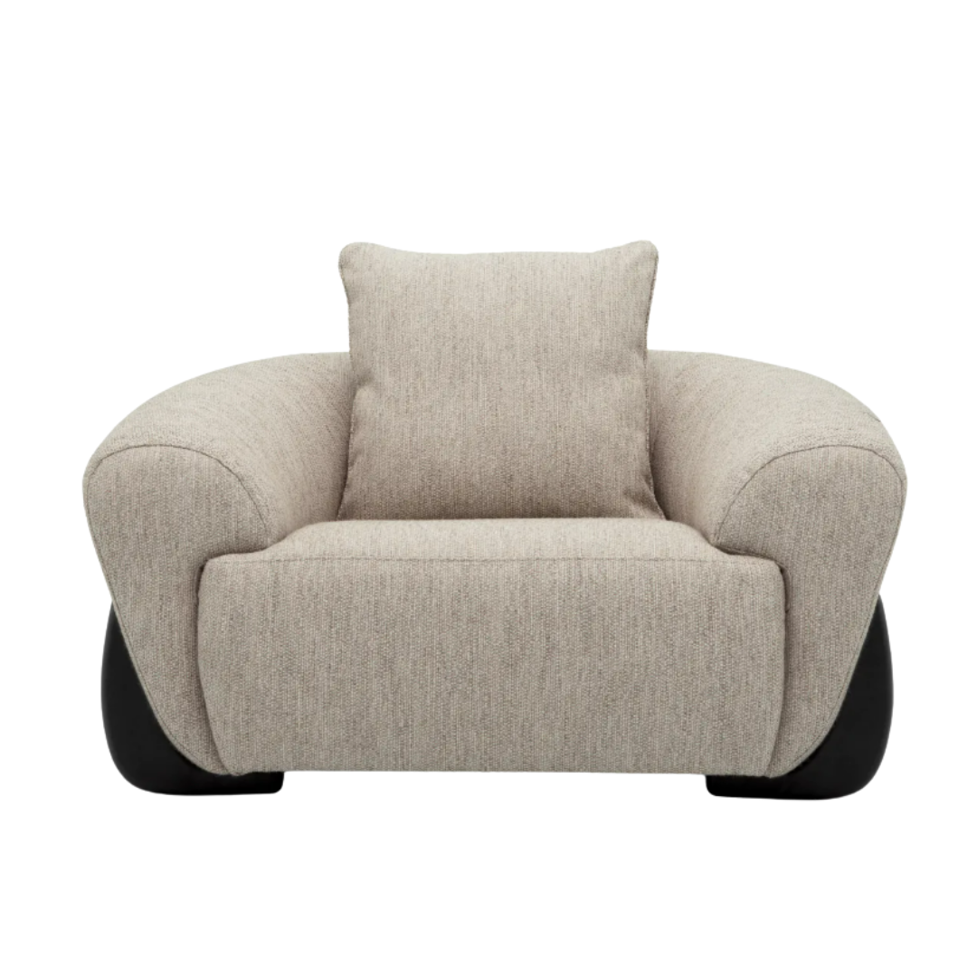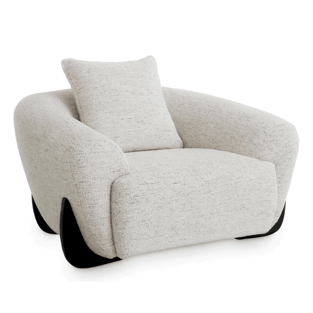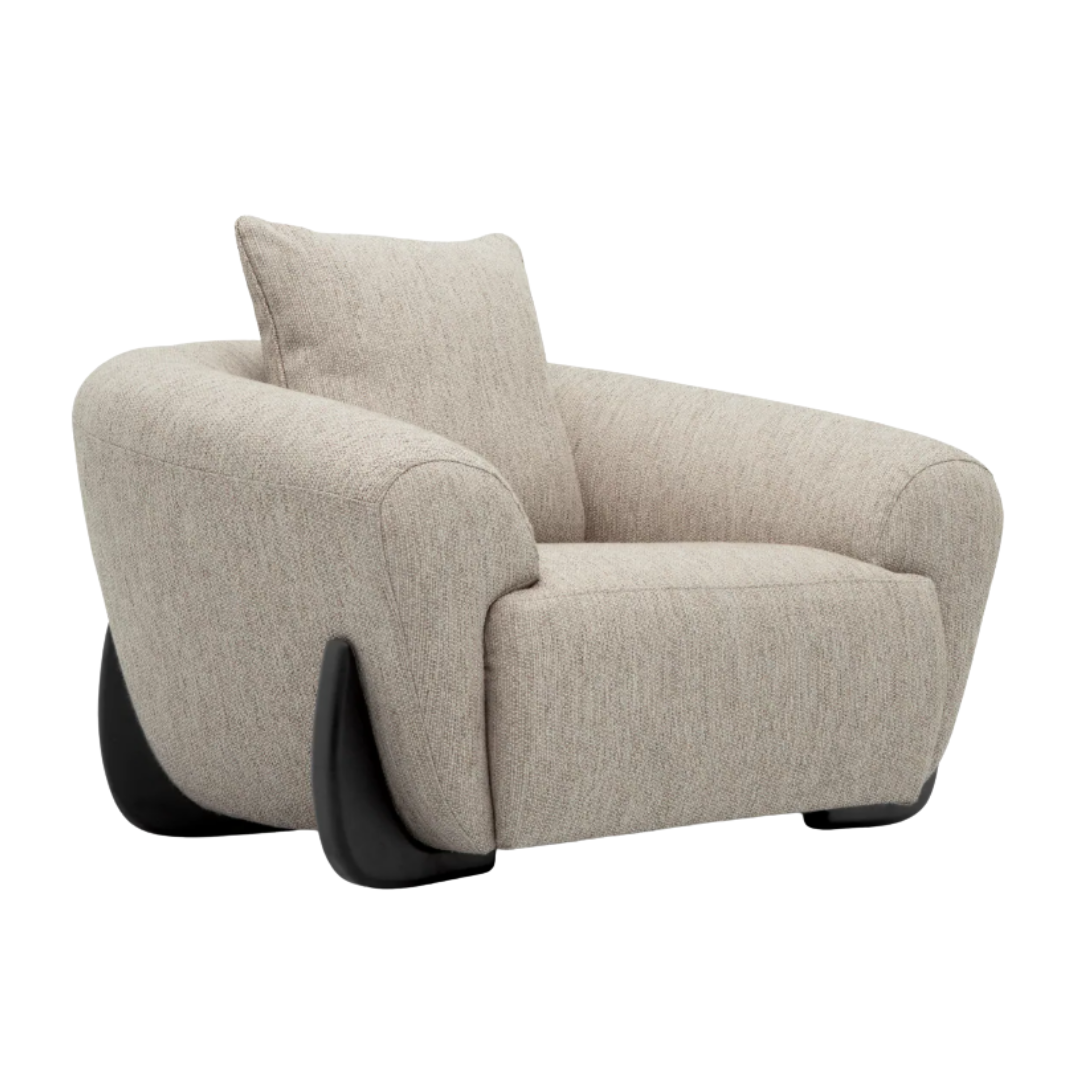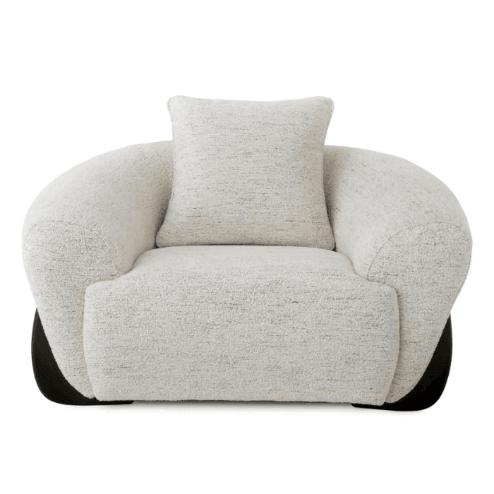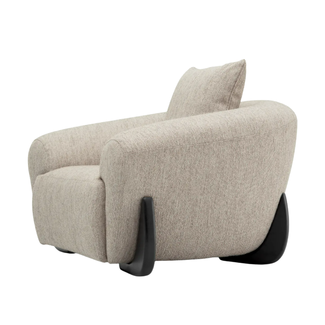 Az Eichholtz Siderno szövet fotel egy igazán kifinomult darab, amely az odafigyelő kézműves kivitelezést ötvözi a modern kényelemmel. A világos szövetet elegáns fekete fa lábak egészítik ki.  A fotelhez egy díszpárna is tartozik, amely nem csak a vizuális élményt fokozza, de a kényelmi szintjét is. Tökéletes kiegészítője bármilyen belső térnek és kivételes választás nappalid bővítésére. A fotel minőségi anyagokból készült, így hosszú éveken át élvezheted kényelmét.