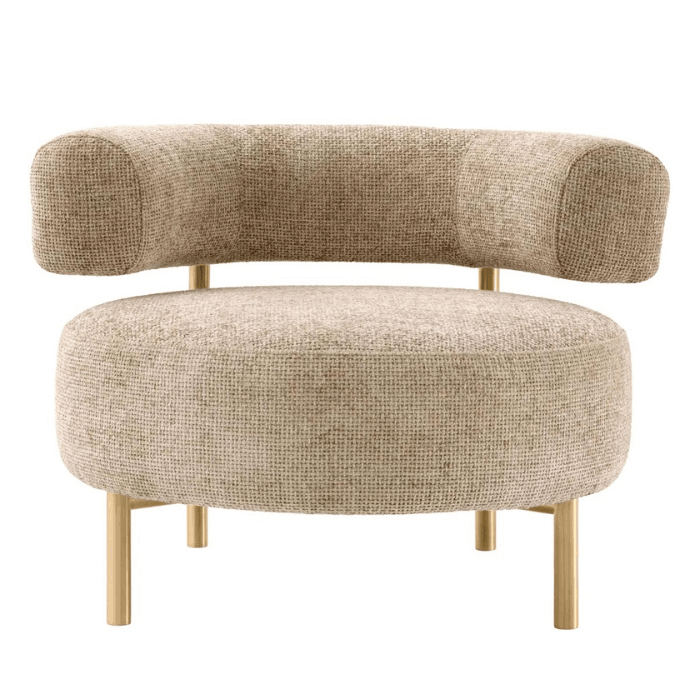 Fedezd fel a kifinomult luxus érzését a Thompson szövet fotel szoborszerű formájával. A hagyományos lounge fotelek újra gondolt változata. A kellemes tapintású kárpitozás és a matt sárgaréz lábak elegáns külsőt kölcsönöznek bármelyik helyiségnek. Teremtsd meg a modern elegancia pompás érzését a Thompson szövet fotel segítségével! Egyszerű kialakításának köszönhetően tökéletesen illeszkedik modern stílusú otthonokba.