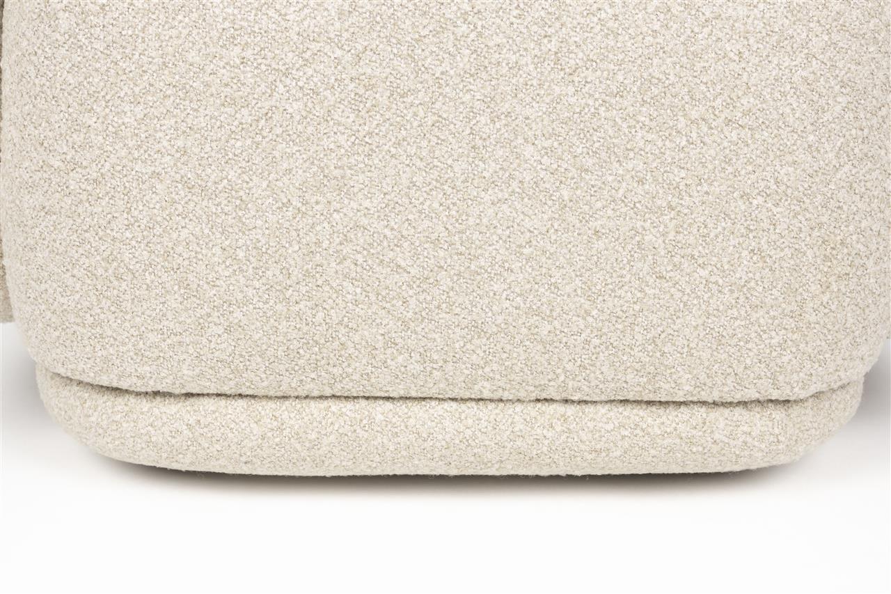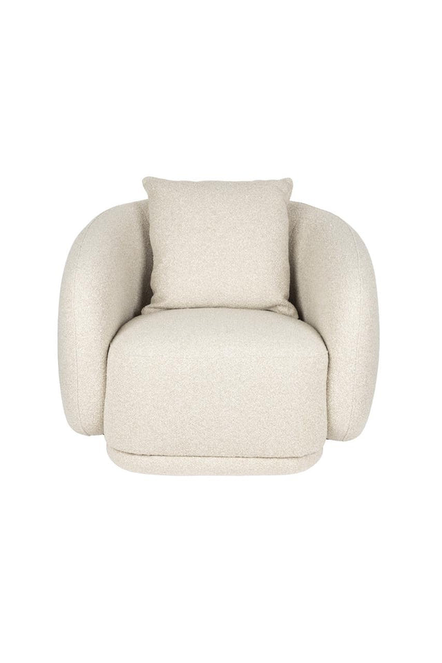 Ez a pihenőfotel valódi relaxációra hívogat. Puha, lekerekített formáival és nagyvonalú ülőfelületével nyugalmat és kényelmet áraszt. A teljes kárpitozás és a finom textúra meleg, szinte ölelő megjelenést kölcsönöz a bútornak; tökéletes választás azok számára, akik értékelik a kortárs belső tereket és a lágy érintést.