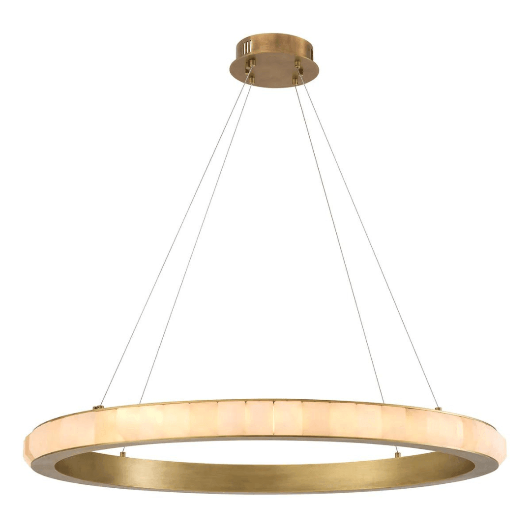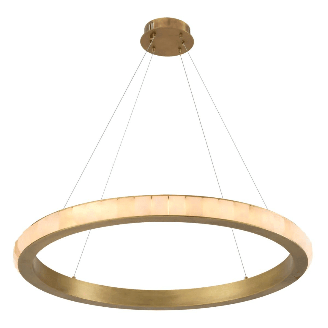 A Cabildo csillár a művészi finomság csodája. Az antik sárgaréz bevonattal díszített csillár tömör alabástrom gipsz tömbök elbűvölő gyűrűjével büszkélkedhet, amelyek művészien elrendezve mennyei fényt és árnyékot hoznak létre. Öleld magadhoz a Cabildo csillár magával ragadó hangulatát, miközben az alabástrom lágy és elbűvölő fényt áraszt. Az állítható acélhuzalok lehetővé teszik a lámpatest vízszintes vagy ferde helyzetbe tételét.